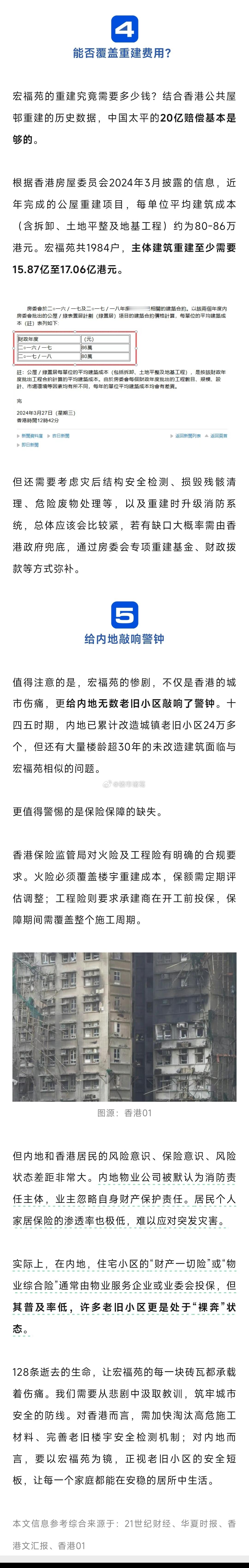 香港宏福苑估计很快会重建了。刚刚看到香港资深工程师说了香港宏福苑的维修成本比重建