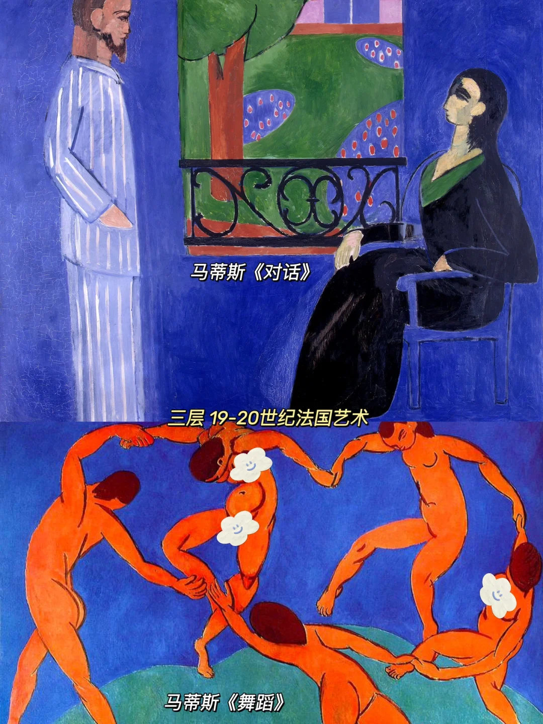最后是野兽派,可以看马蒂斯色彩斑斓的🕺舞蹈与对话。