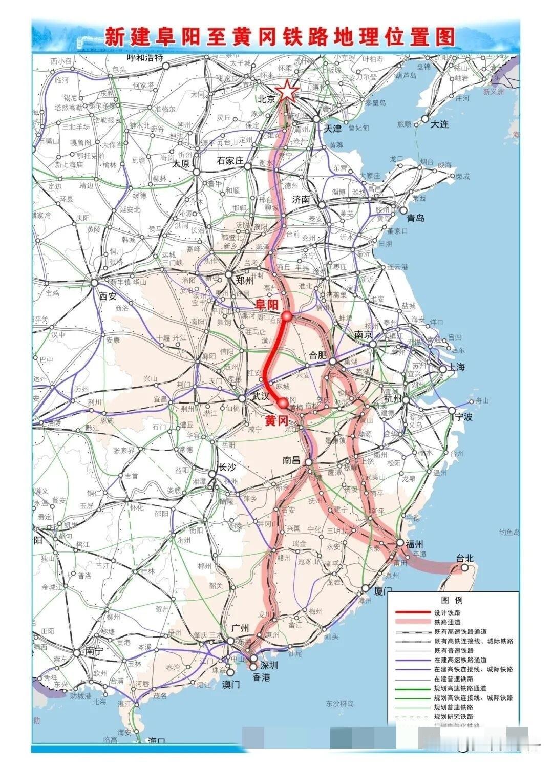 好消息!阜阳至黄冈铁路项目迎来关键性进展,目前正加速前期规划论证。 作为我国中长期铁路网规划中京港(台)高速铁路通道的重要组成部分,该线路已被明确纳入“十五五”铁路发展规划。 据悉,根据规划方案,阜阳至黄冈铁路起点位于阜阳枢纽阜阳西站,线路总体呈南北走向,依次经过阜南、潢川、光山、新县、红安、麻城、黄州等重要节点,随后衔接黄黄高速铁路,通过新建联络线工程接入黄梅南站,并利用安九高速铁路南延至九江。项目正线全长318.11公里,遵循高速铁路设计标准,设定时速为350公里。 在站点布局方面,项目计划新建车站6座,同时整合利用现有车站3座,阜阳至黄冈铁路的建设将显著提升沿线地区的交通可达性,缩短时空距离,促进人流、物流、信息流的高效流动,期待早日建成通车!