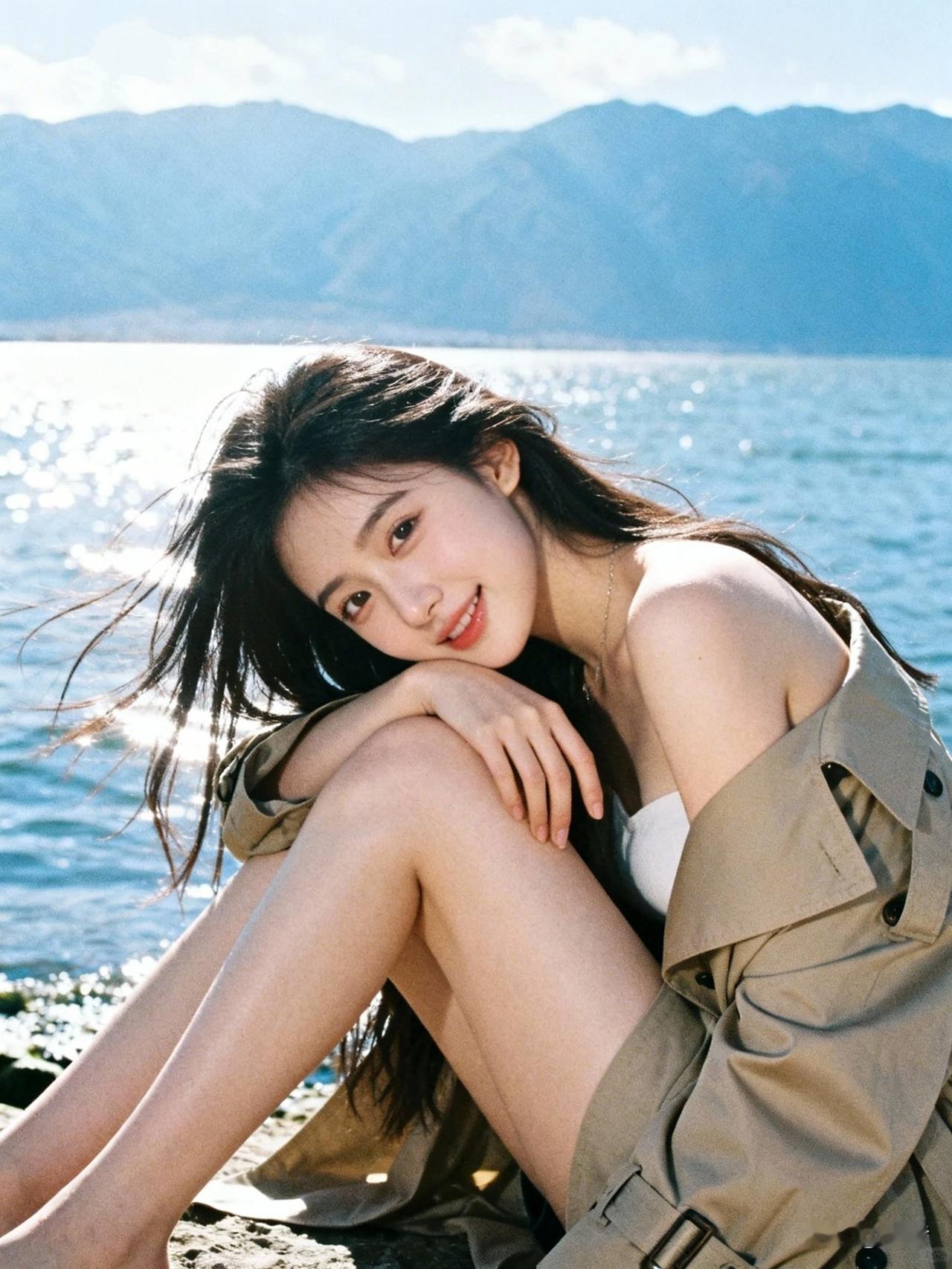 像闯入文艺电影里的女主角 风衣勾勒姣好身形 发丝光里藏着整个青春的灵动