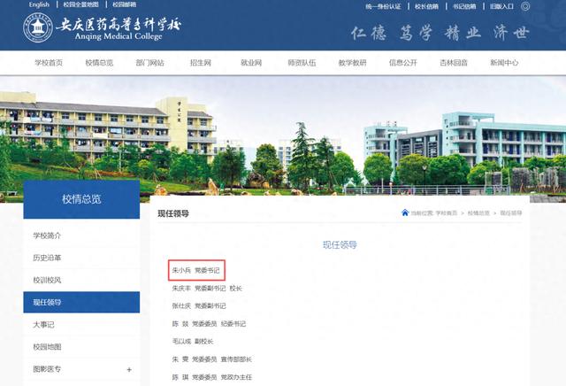 据安庆医药高等专科学校官方网站“现任领导”一栏近日更新显示,朱小兵已任安庆医药高等专科学校党委书记。