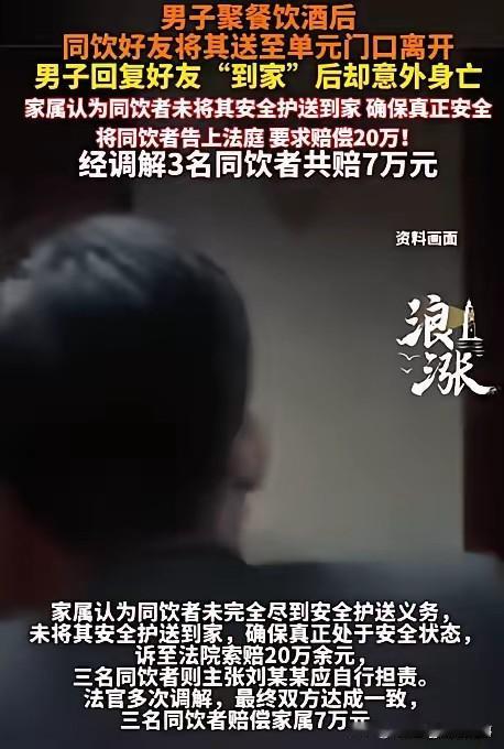 “送他到单元门口,还收到了到家消息,怎么就成了我们的责任?”内蒙古鄂尔多斯3名男子的疑惑,道出了无数人对“酒局责任”的认知盲区。他们与刘某某深夜饮酒后,尽责护送其至单元门口,确认进入后离开,且收到了刘某某的平安回复,却因刘某某后续意外去世,被家属索赔20余万元。 法院最终的判决,打破了“送到门口即免责”的误区:共同饮酒人之间存在相互提醒、照顾的安全注意义务,仅送至单元门口,未确认其实际进入家中并处于安全状态,属于未完全履行义务,需承担相应赔偿责任。 这场悲剧,没有赢家。家属失去亲人,朋友背负赔偿与愧疚,而背后的教训,值得所有人警醒:酒局不是“喝完就散”,而是要对彼此的安全负责到底。多一句叮嘱,多一步确认,或许就能避免一场悲剧,守住一份情谊。 素材来源于网络,侵权删除。