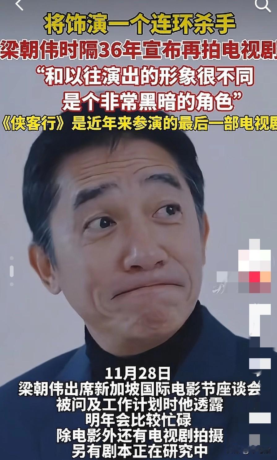 梁朝伟宣布,时隔36年将再拍电视剧,以往他为了缩短工作时间,都以电影为主,拍一部