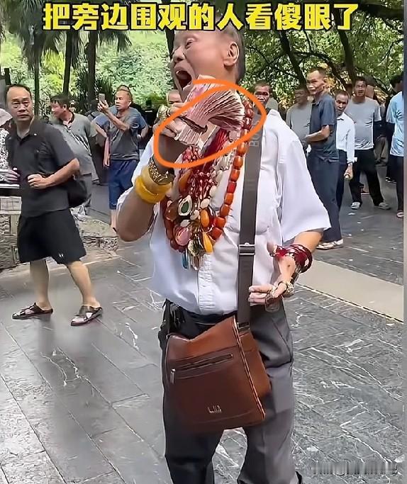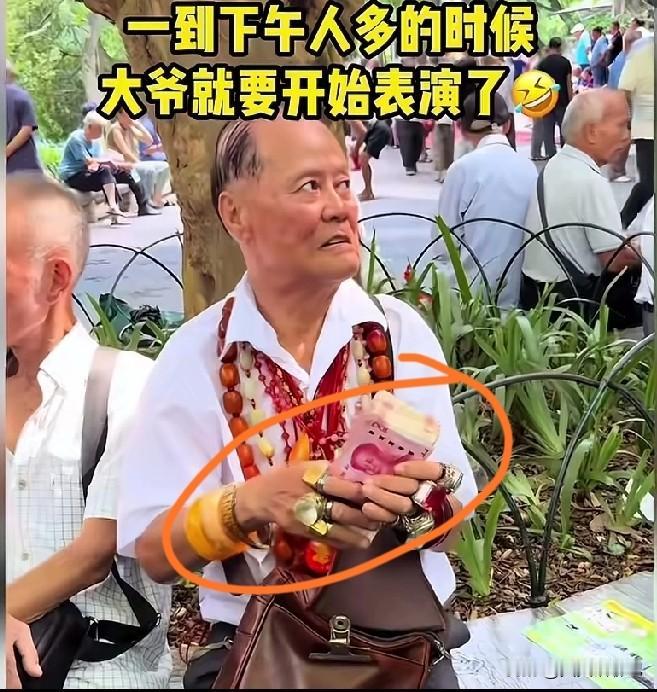 大爷七十多岁了, 每天公园人多的时候, 就拿出一沓钞票炫富, 都说财不外露, 可