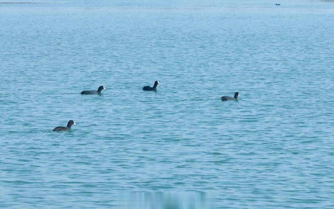 成群的白骨顶鸡掠过水面