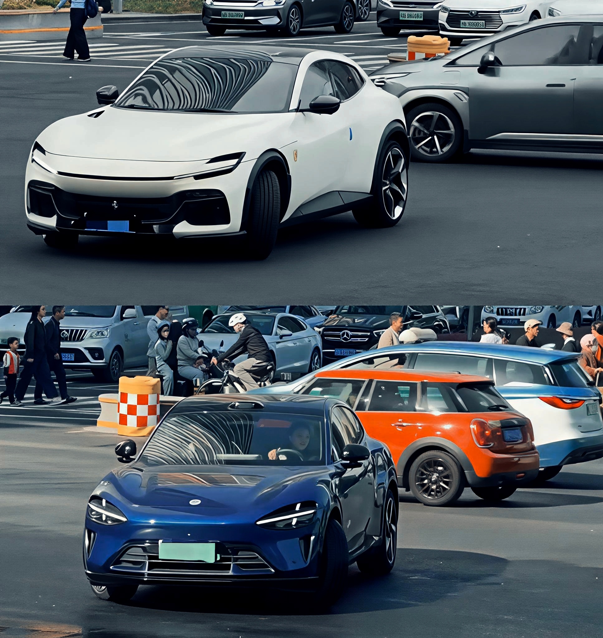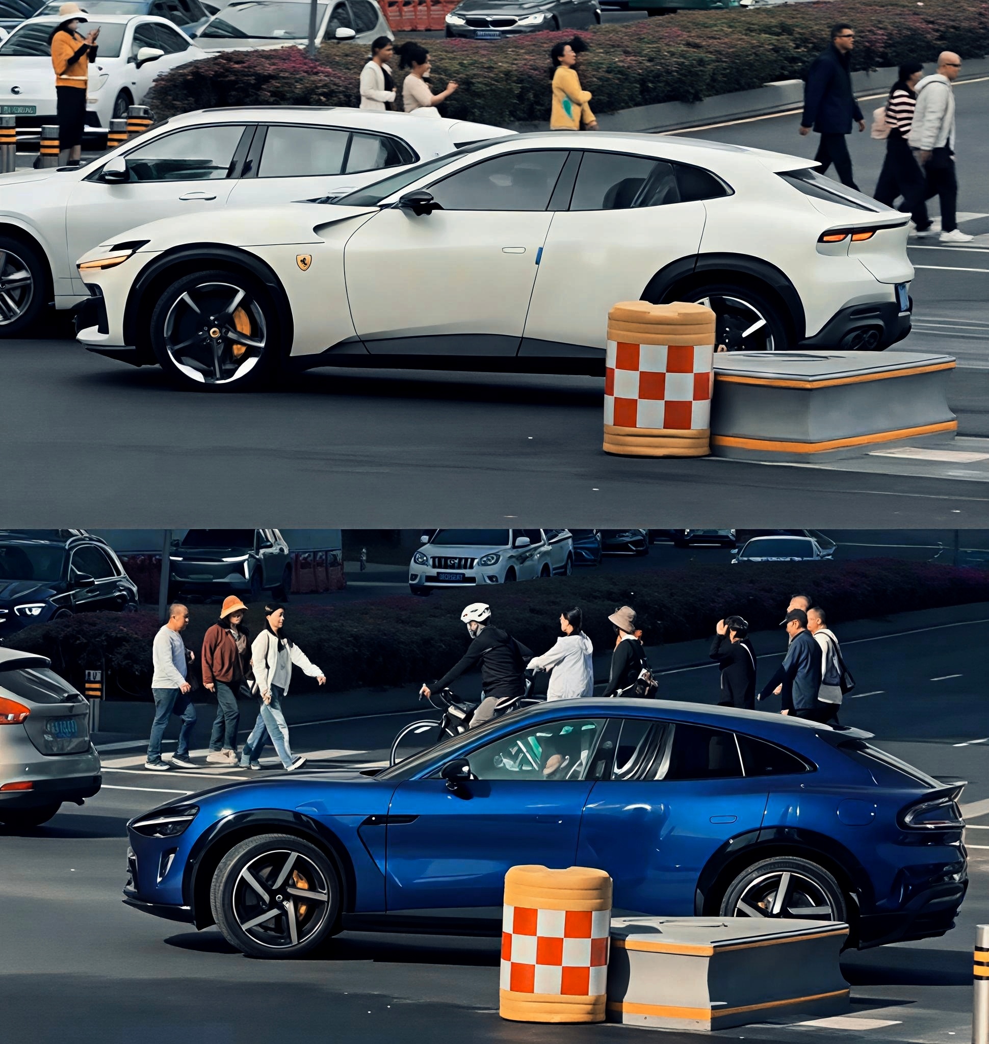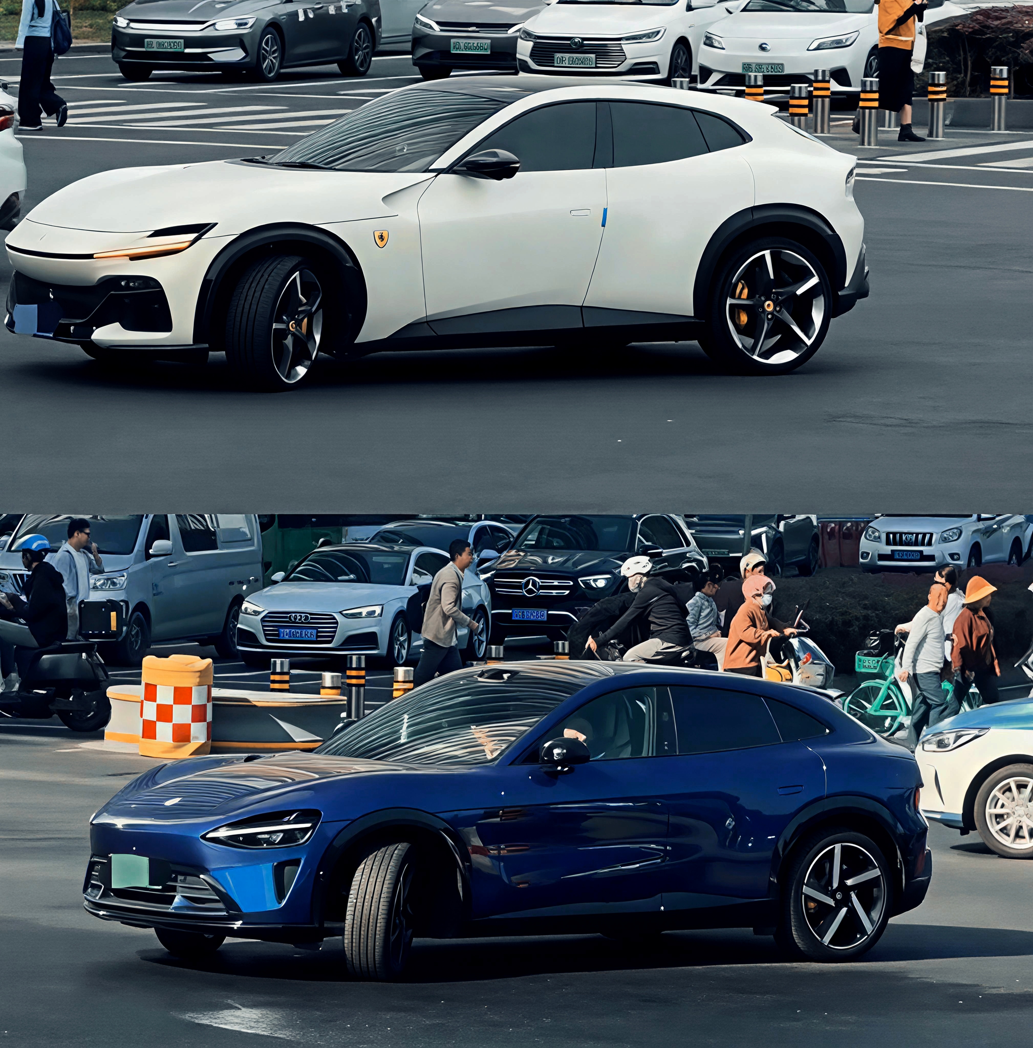 小米YU7和法拉利FUV,放在同一个机位和角度,可以看到流线型都是做到了极致,都