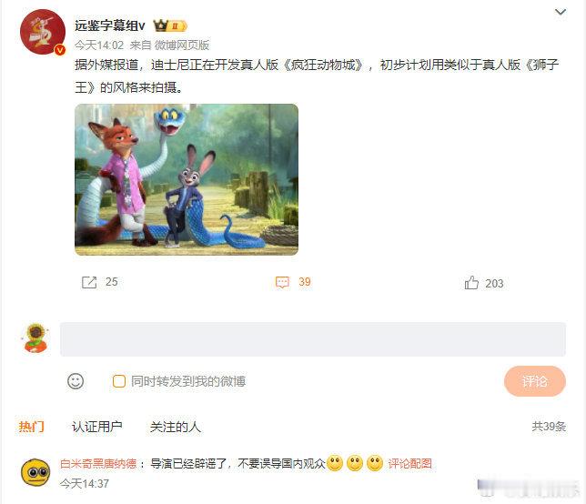 导演回应疯狂动物城真人版传闻,明确否认相关拍摄计划,称动画原有呈现方式更能保留作