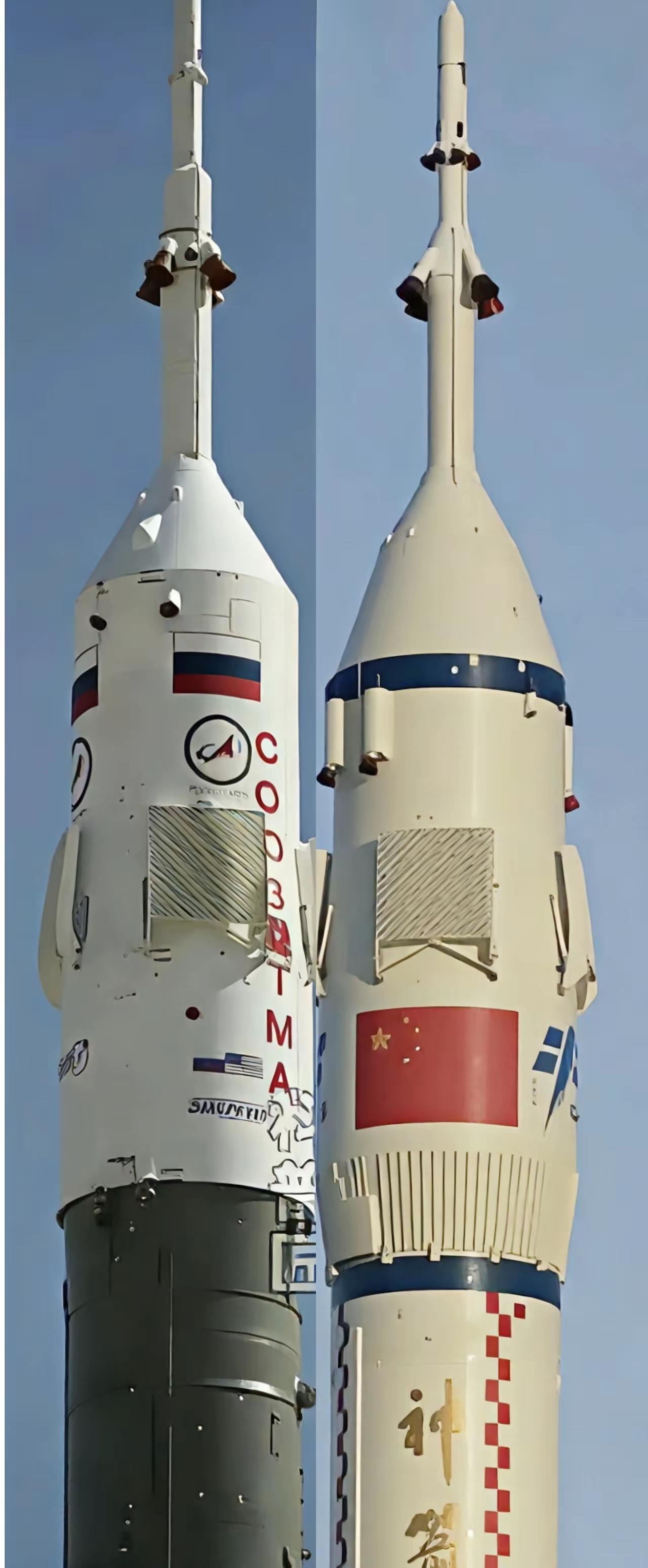 这次终于看清楚了! 瞧见中俄火箭顶上这根“金箍棒”没?它可不是避雷针,而是宇航员的“保命神器”!🚀 它的作用就是,发射时万一火箭“闹脾气”,它就能立刻带着飞船“拔腿就跑”,比窜天猴还利索。虽然希望永远用不上,但有它在,咱宇航员心里就踏实,因为“上头有人”呀! 这造型,虽说两者相像,但个人更喜欢咱们家的。因为仔细看,好像咱们逃逸塔上面装的发动机比大俄的多了四台,这是否意味着一旦启用,就能更快带着宇航员逃逸呢?[思考]