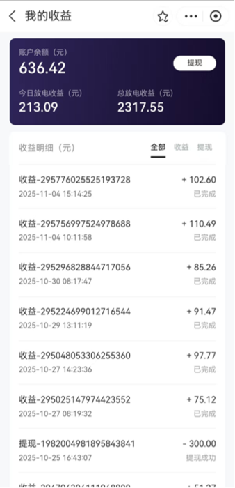 “晚上使用家用充电桩充电,每度电成本不到0.3元,白天到园区放电,一度电收益3元,算下来一天最多能赚200余元!”10月中旬,在国内规模最大的V2G示范项目——广州广汽埃安园区V2G示范站,车主唐先生看着计量表上跳动的数字,算了笔“收益账”——他的新能源车电池容量60度,夜间充电仅需18元左右,白天尖峰时段放电能收入180元,扣除偶尔补能成本,月净收入超2000元,“相当于多了份‘停车兼职’”。
