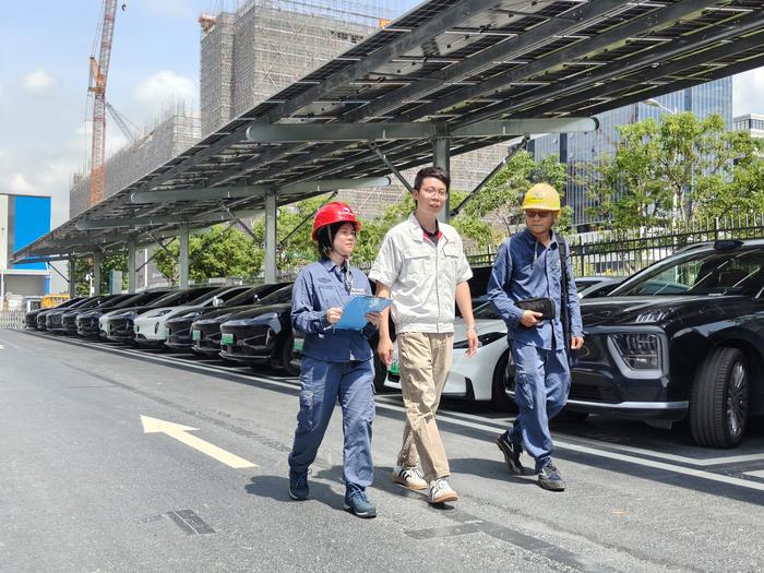 图为广州供电局工作人员走进全国最大规模的V2G项目现场与用户开展用电需求交流