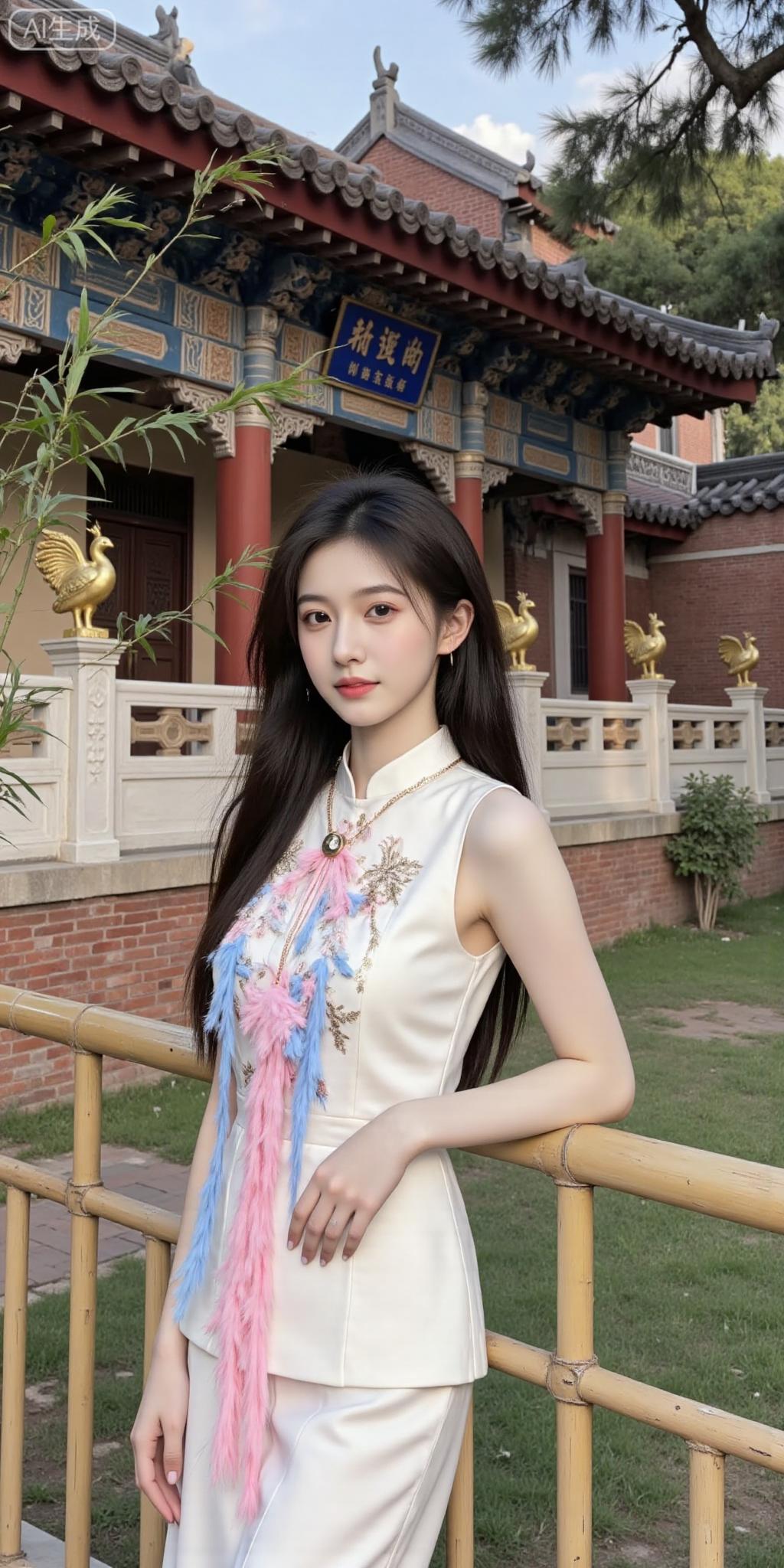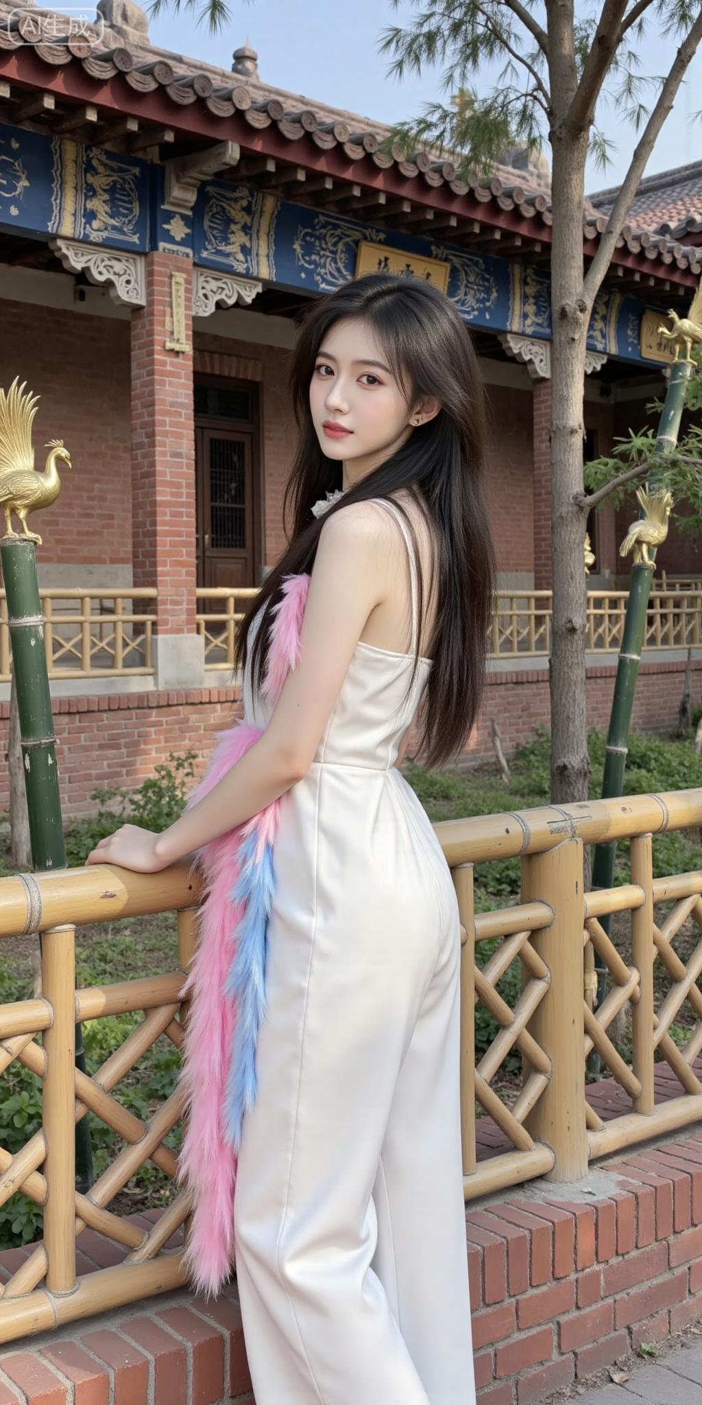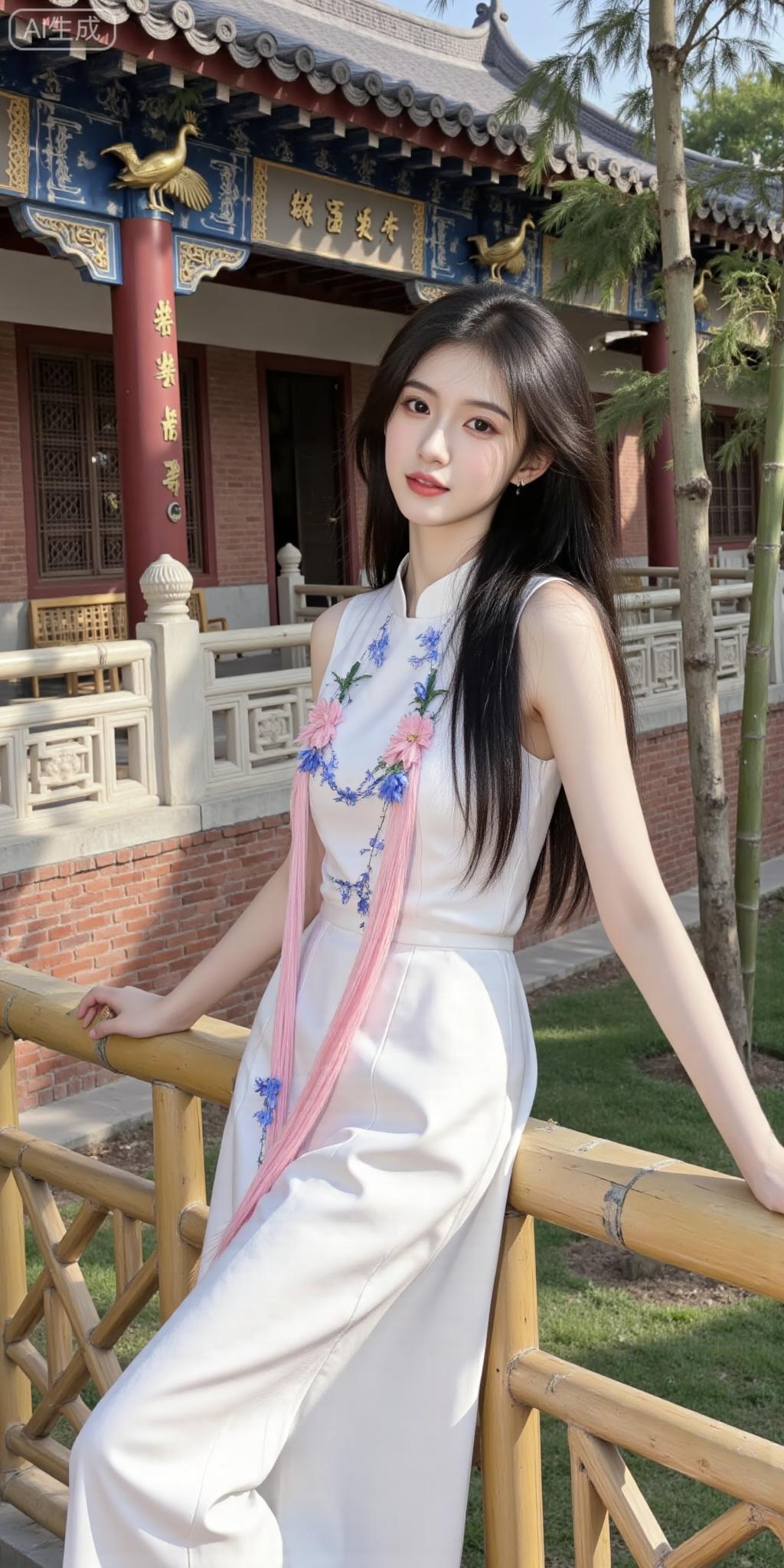 温柔甜美的少女,粉色吊带裙,自然光下更显清新动人。