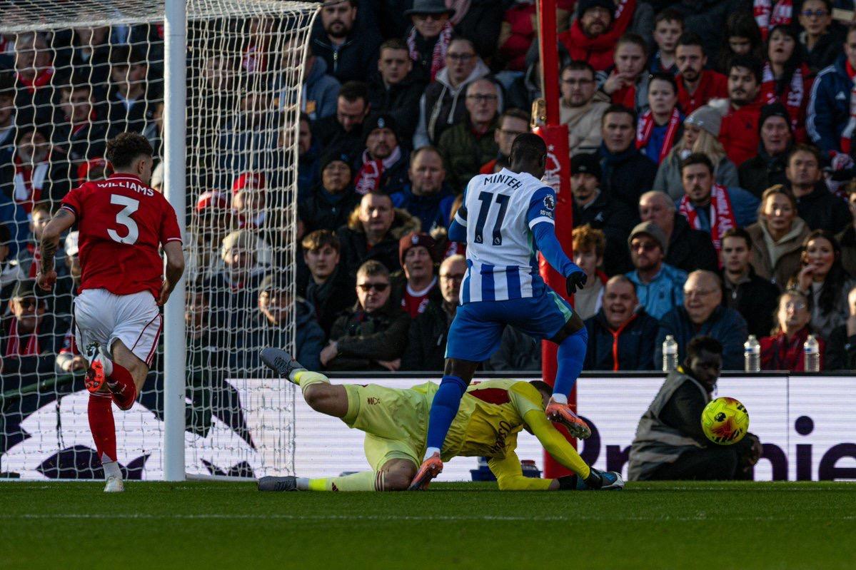虎扑11月30日讯本轮英超半场过后,布莱顿暂时1-0领先诺丁汉森林。