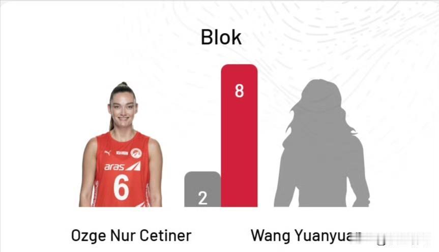 王媛媛土超首秀12分,8次成功拦网,外国博主立即整活,做了一个墙姐的图片,哈哈,媛媛成中国长城啦! 官网统计王媛媛10扣3中,拦8分,发一分,我统计拦网九分,对第一局的第二个拦网跟官方有不同看法。今天发球的状态 王媛媛进入较慢,尤其前两局各有一个失误,但是王媛媛在失误后知道自我调节,先控制好失误,后两局发球就放开了,弧度降低,球速加快,自然就有了一个发球得分。其他技术也有亮眼表现,比如弥补一传的垫调,反应快不犹豫,质量好。飞身弥补第一下离谱的一传,快攻上步上主动适应二传的节奏,压住速度上步。总之,刚到土耳其几天,就能有这种高水平的发挥,可见王媛媛适应能力很强,让大家有些惊喜。首局加拉打得松懈,另外对手发球强轮不少,对希腊外援安图立的对角线这条线应变不足,导致安图立得分效率很高。