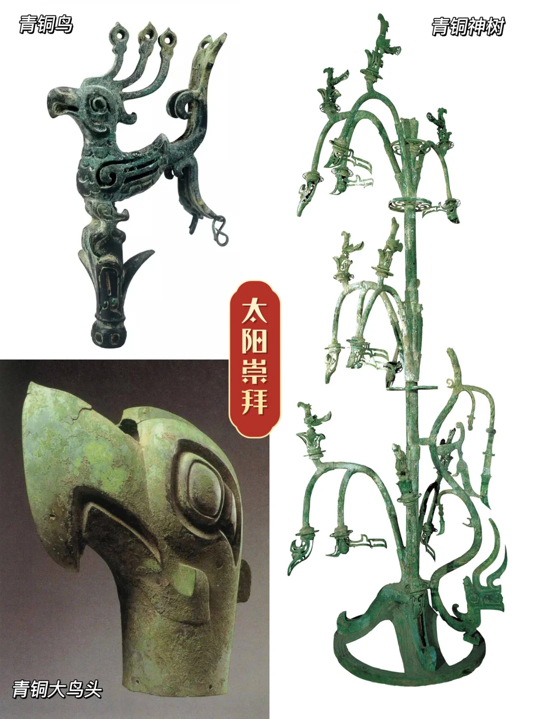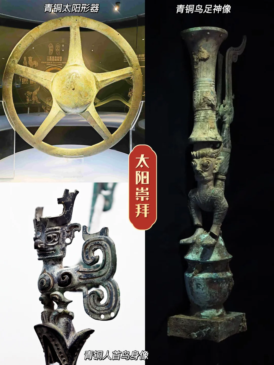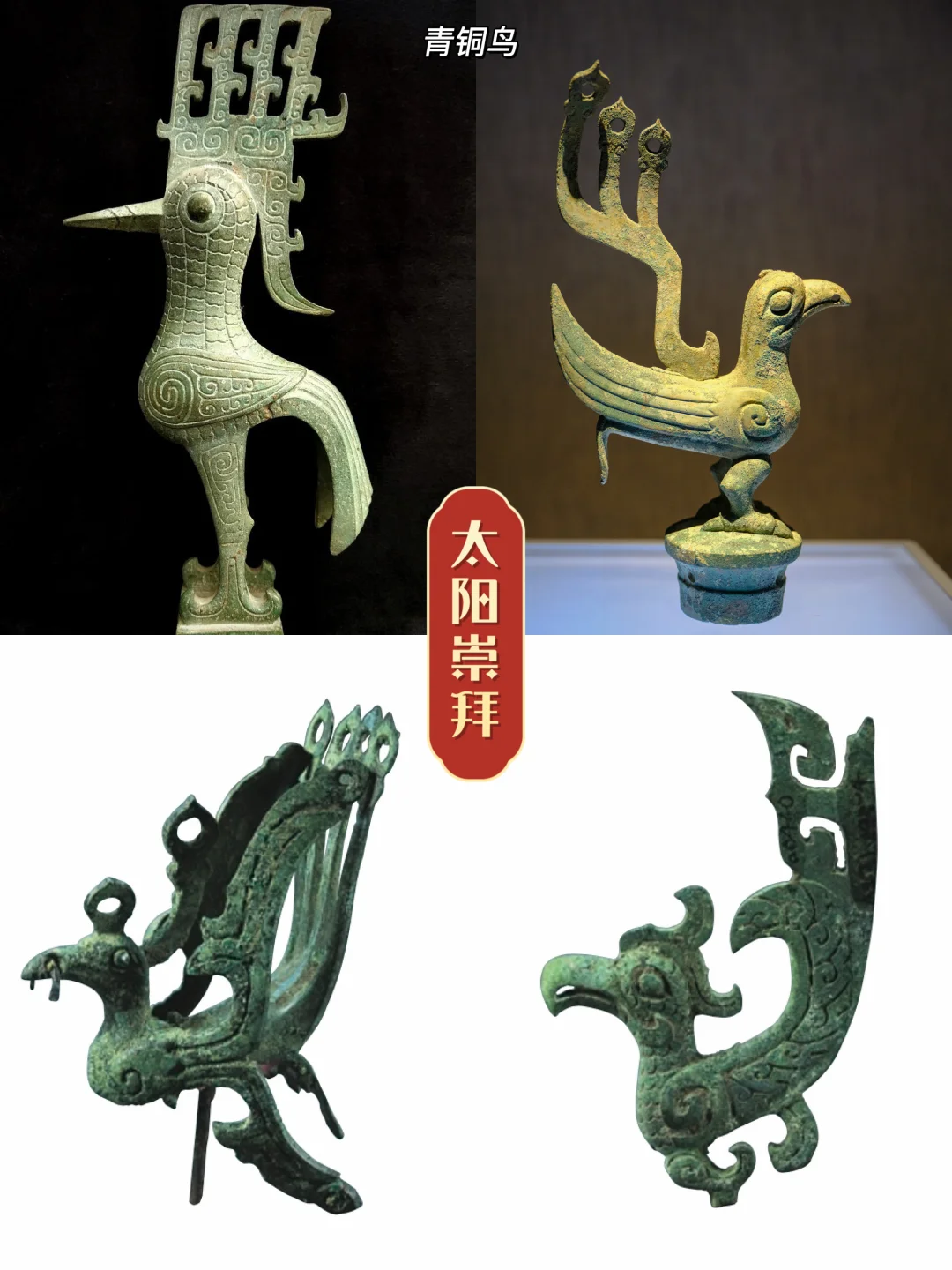 🐦古人常将太阳与鸟的概念合二为一,在三星堆出土的文物中,无论是半米高的青铜大鸟头、还是形态不一的青铜鸟以及青铜鸟足神像,都或许由此而生。