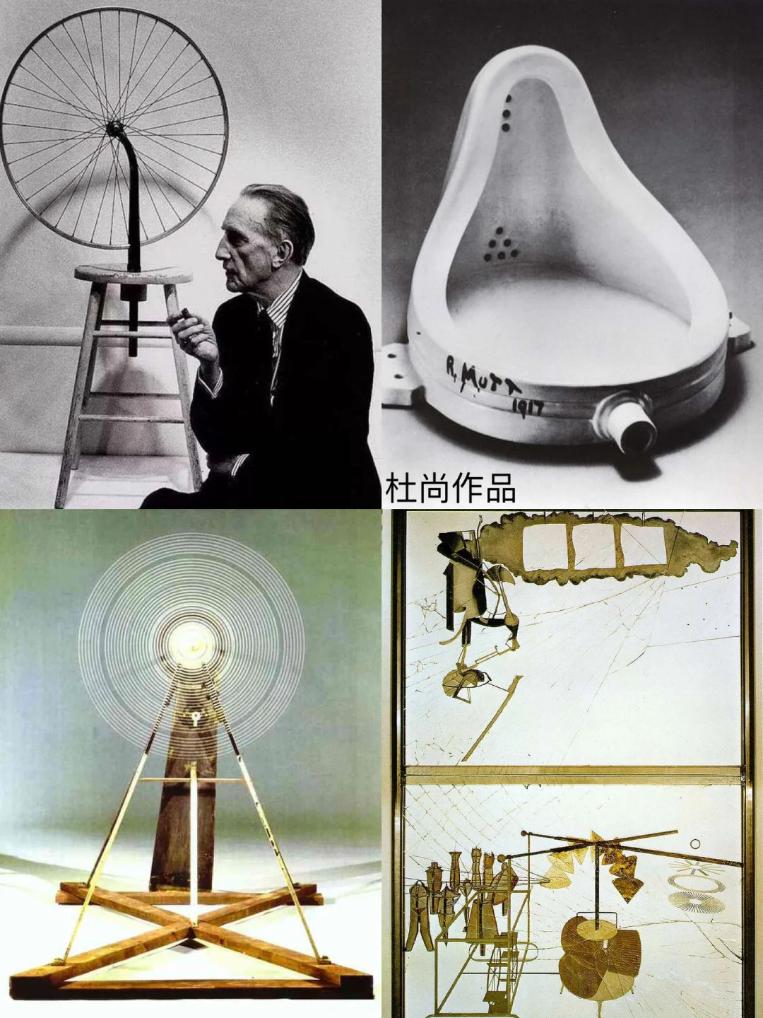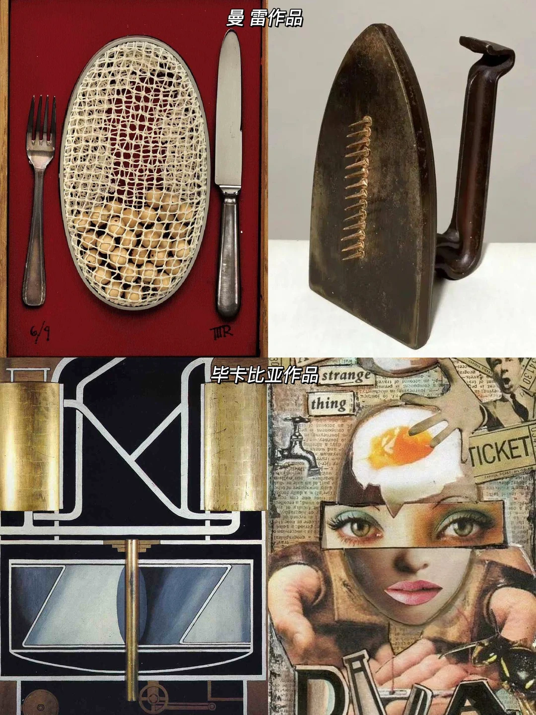 他们的创作思想与达达不谋而合。杜尚展示手写签名的小便器;曼雷制作带有马达的旋转玻璃盘;皮卡比亚用木、铜、厚纸板创作拼贴作品。