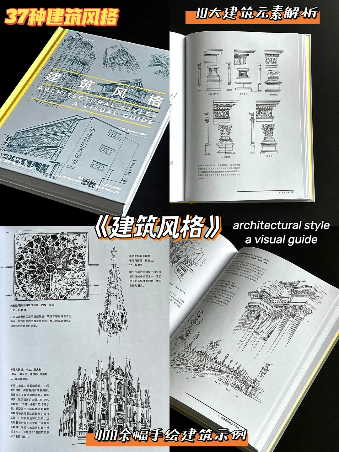 🔹以上内容参考了✨《建筑风格》一书,从古代、中世纪、文艺复兴,到巴洛克、洛可可、现当代,这本书关于风格的介绍和手绘图稿还有很多,喜欢建筑的同好们快来看看哟。