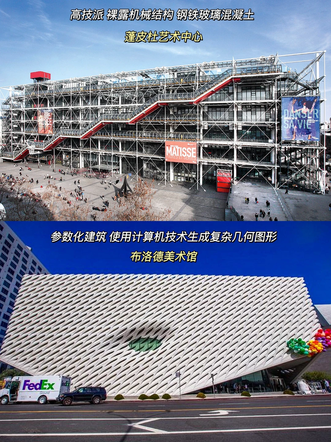 🔹再之后是科技力量的展示。✨高技派的扛鼎之作为蓬皮杜中心,它以钢铁、玻璃构成、所有功能结构都暴露于外,显现出工业化的极致审美。