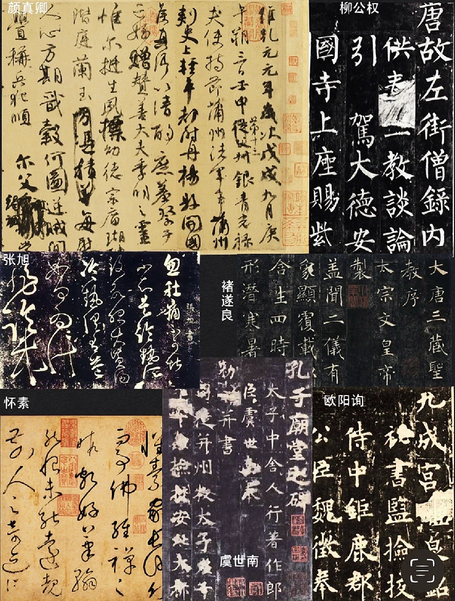 -除了绘画,唐朝另一个艺术成就是书法。唐初李世民推行王羲之书法,唐初四家欧阳询、虞世南、褚遂良、薛稷均代表了此时的风格。