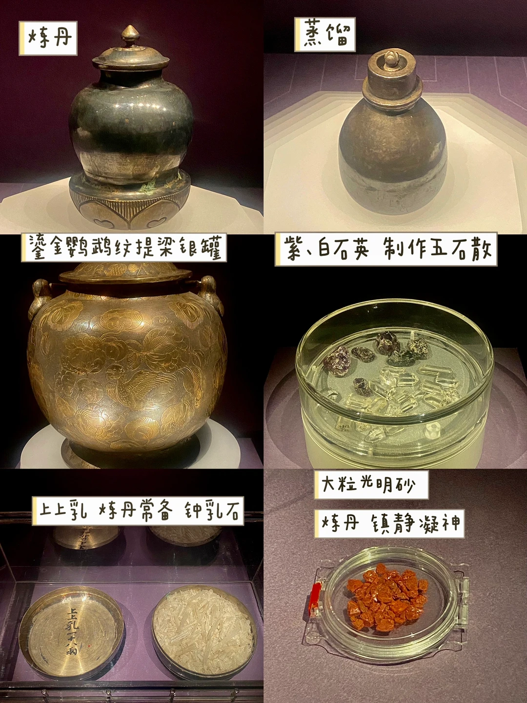 唐代崇尚道教,痴迷长生不老。何家村就出土了大量丹砂和炼丹器具,它们具有“健五脏,提精神”的作用。