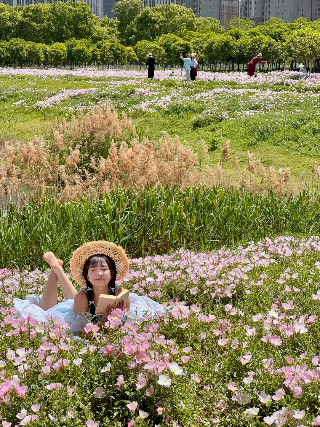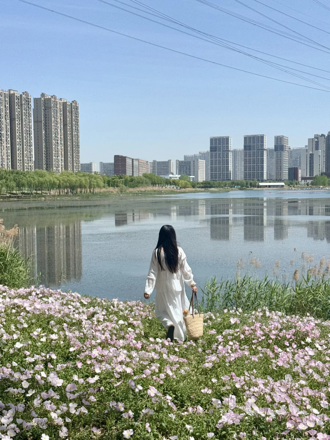 武汉的春天真的太美啦 黄塘湖公园的月见草开的正艳 🚊地铁3号宏图大道f1出口步行十分钟