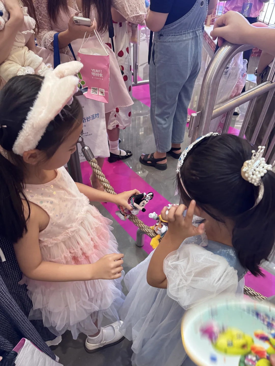 原来是米奇米妮玲娜贝儿来了 我看看是谁这么幸福跟她们合影了 原来是我们一家三口🧑🧑🧒 端午节碰上六一儿童节 就算下大雨 武昌万象城依然很火热