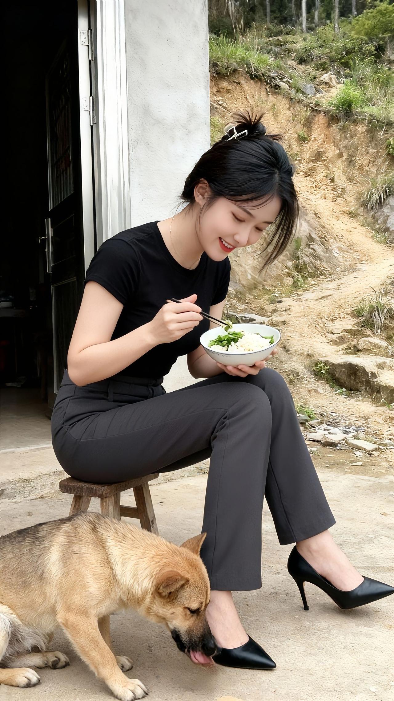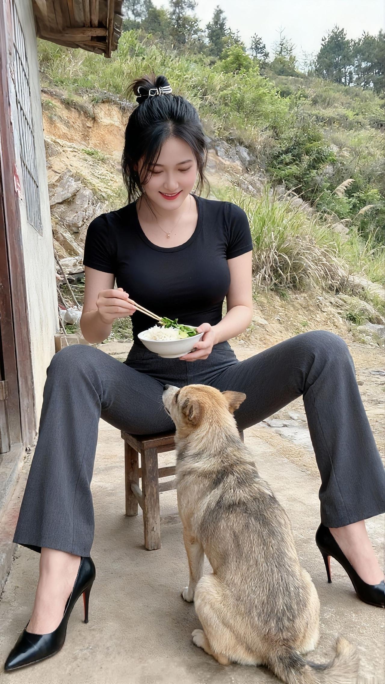 第5期穿搭分享 这个穿搭是**“都市通勤风+乡村场景”的混搭风格**,核心特点和适配性如下: 穿搭组成与风格碰撞 1. 上衣:黑色修身短袖T恤 ◦ 基础款版型,简约百搭,兼具日常休闲与轻通勤的适配性;黑色调显瘦且不挑场合。 2. 下装:深灰色高腰直筒西裤 ◦ 西裤的垂坠感和正式感,是都市职场穿搭的常见单品;高腰+直筒的版型修饰腿型,同时与T恤形成“休闲+轻正式”的组合。 3. 鞋履:黑色尖头细高跟鞋 ◦ 高跟鞋强化了“通勤/精致”的风格属性,但与乡村户外的场景(土坡、矮凳)形成反差,是穿搭的“混搭亮点”。 适配场景与风格延伸 • 原本的适配场景:都市通勤、轻商务约会、日常出街; • 图中是场景混搭:将都市通勤装穿进乡村环境,形成“精致穿搭+质朴背景”的视觉反差感。 若想强化日常休闲感,可将高跟鞋替换为小白鞋/乐福鞋;若想更正式,可搭配西装外套。 显气质穿搭风格
