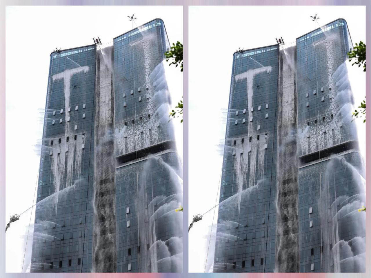 吹吧,国内的高楼着火也不少,咱没见过用高科技灭火