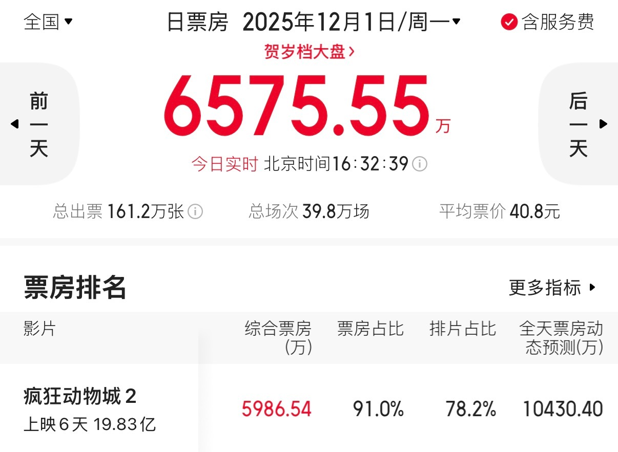 电影《疯狂动物城2》这票房走势波动太大了,周末十几亿,工作日今天预计不到一亿,绝大部分都是小朋友带动家长在看了。