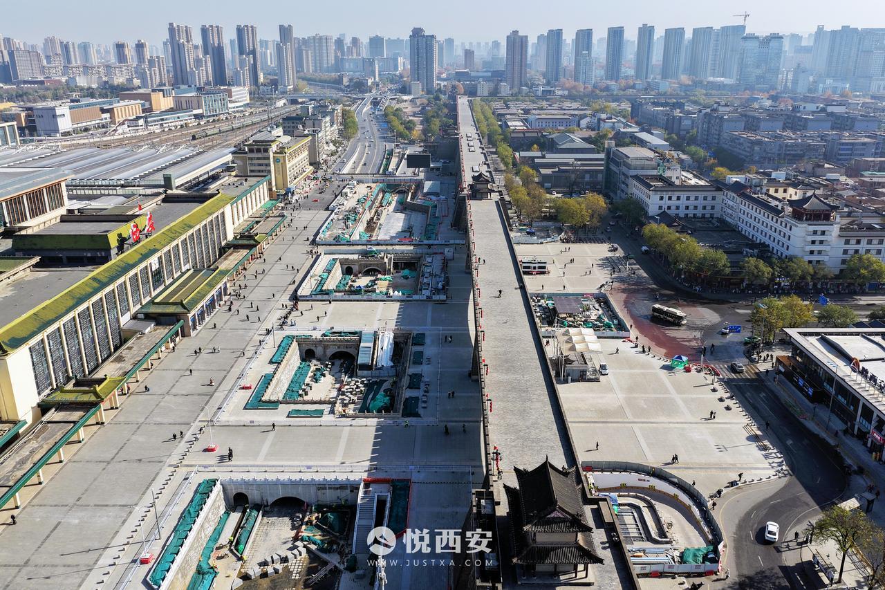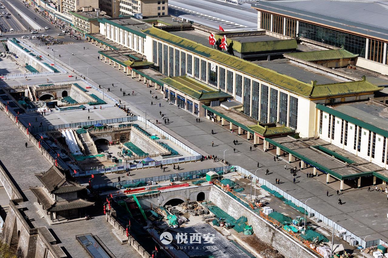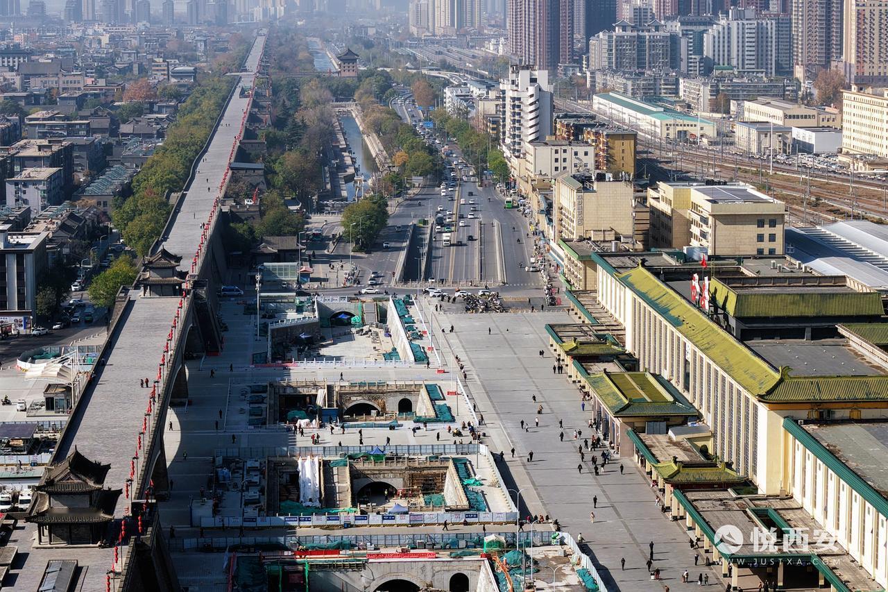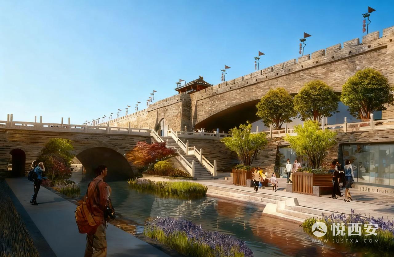 填补西安护城河最后一块“拼图”,实拍火车站段敞开部分建设——整体河道面貌已经显现,未来将形成4处景观水面,敞开段长度接近400米,同时西安站南广场核心区域桥梁增至3座。