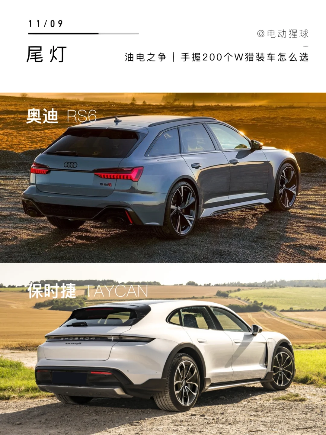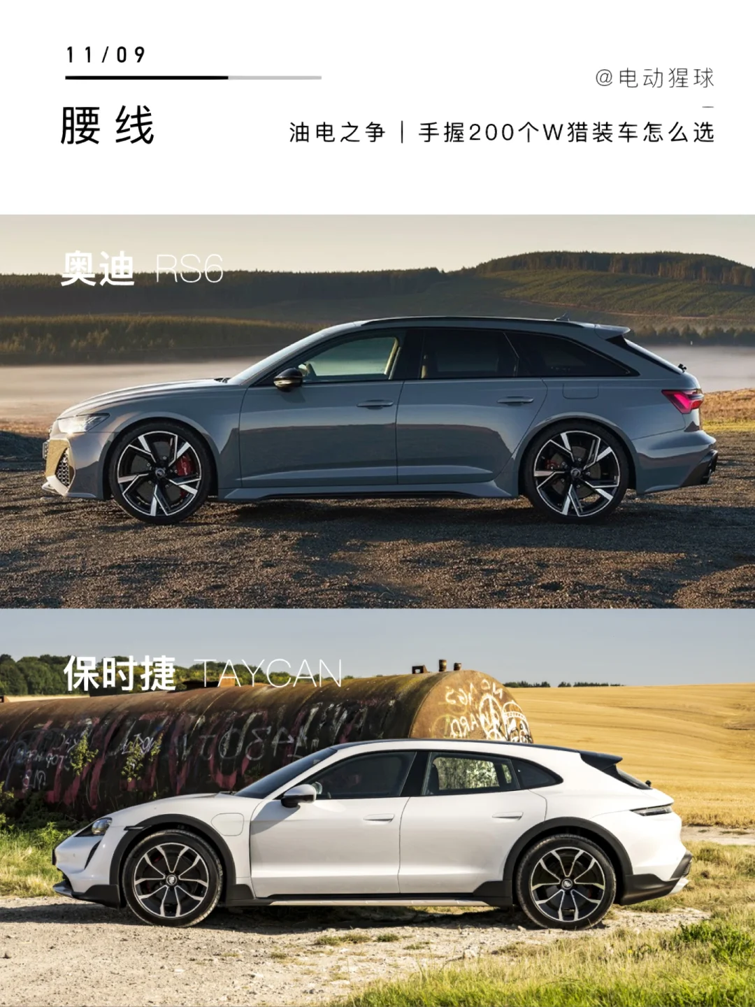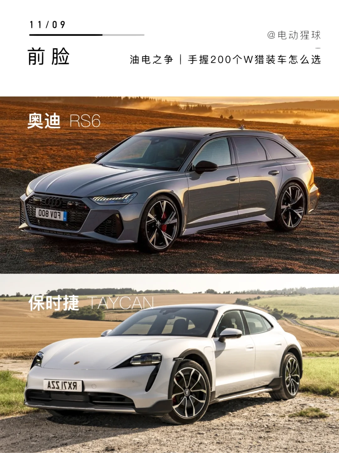 油车时代西装暴徒奥迪RS6,对上纯电豪华超跑taycan,手握200个W,你怎么选?