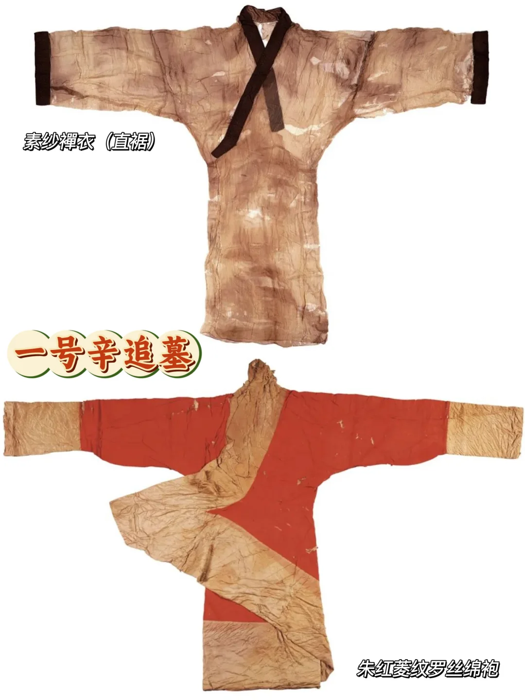🔸这便是辛追夫人的爱美之心,在其墓中,光衣服就装满了六个箱子,有直裾、曲裾的素纱单衣、有朱红菱纹罗丝棉袍、还有丝制的鞋袜和手套。