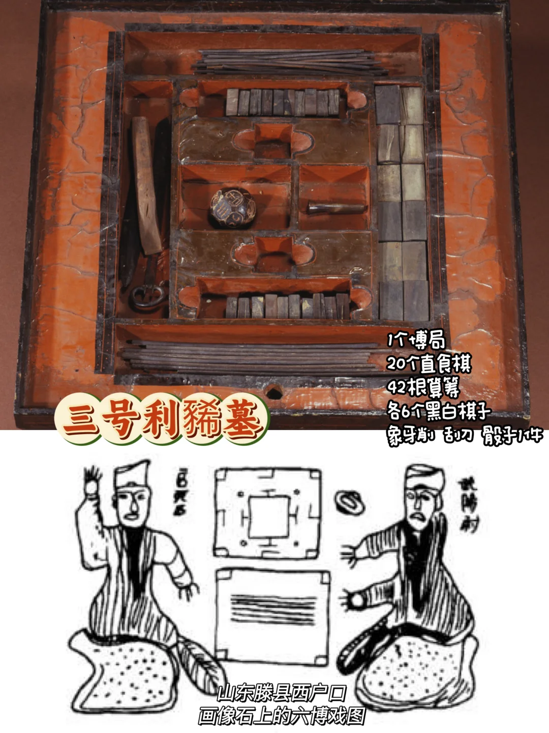 🔸此外,三号墓还出土了一款博具,由两人掷骰,再按结果行棋,是汉代男女老少都爱的游戏。