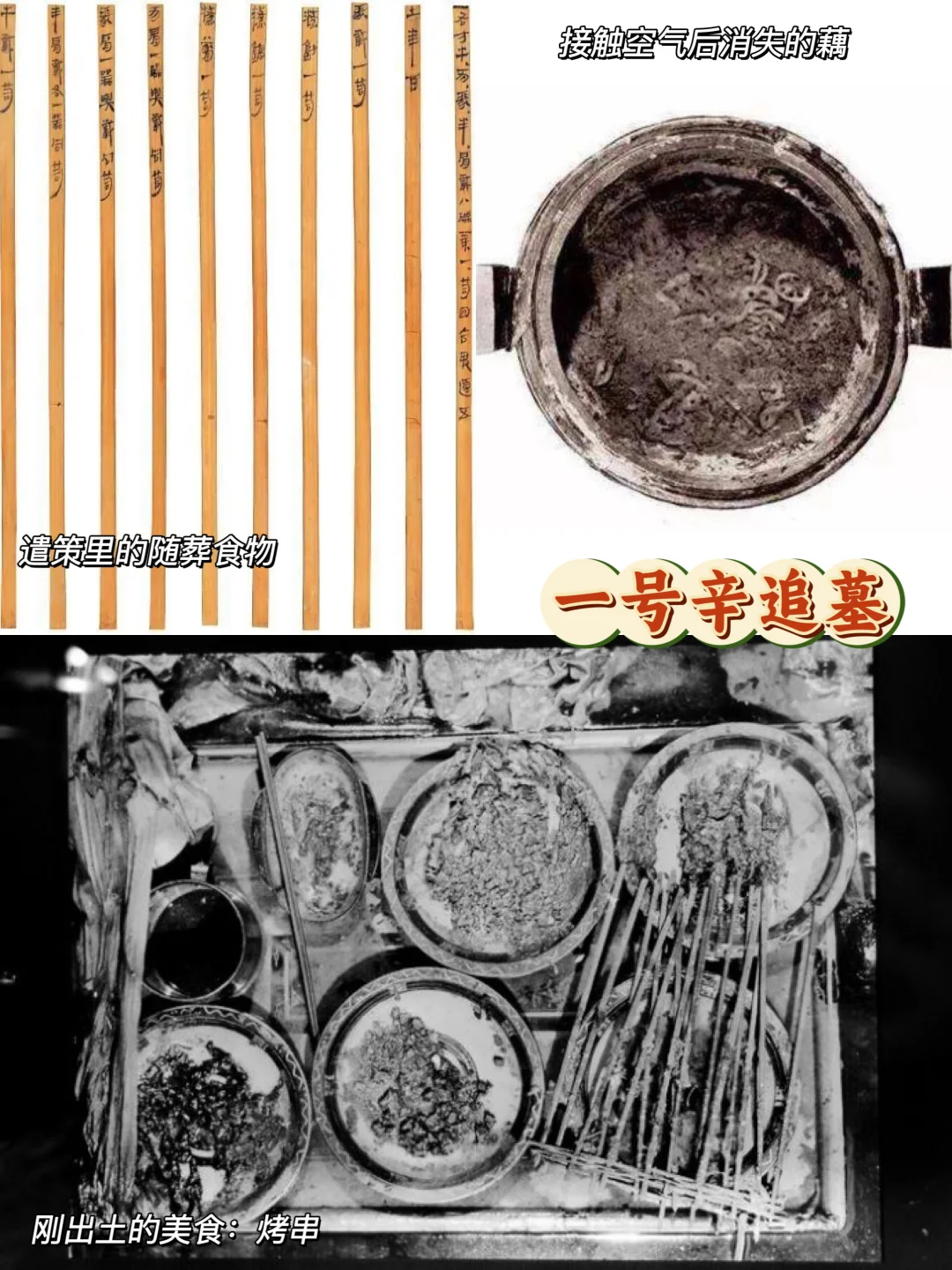辛追夫人好吃,随葬品中有丰富的五谷杂粮、瓜果蔬菜、米糕油饼、肉干野味,其中,杨梅和莲藕被发现时,连颜色都是新鲜的。