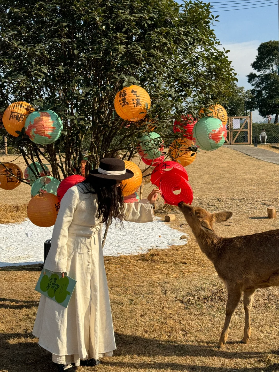 🦌园内散养了近50头小鹿,它们完全不怕人,很好rua!可以在ACDC前台购买小鹿喂养包,还会附赠鹿园限定丝巾