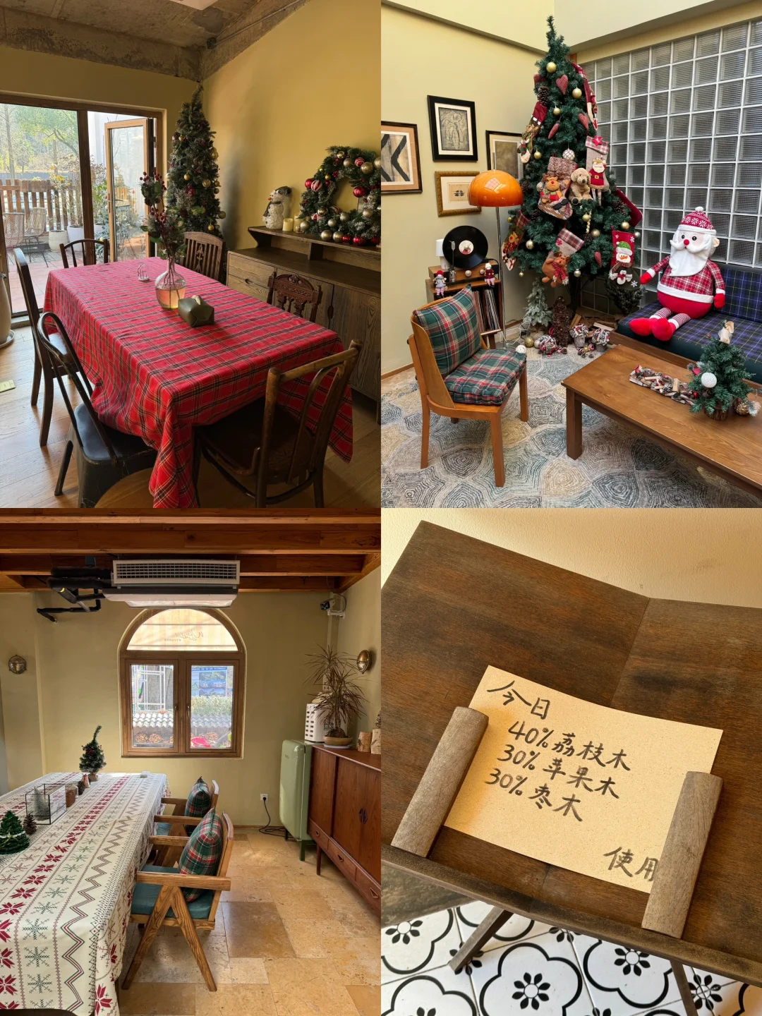 附近的村民食堂和薪火料理也很有特色,薪火料理一楼还写着当日可使用的木材,让人仿佛置身于乡村游戏中的NPC。
