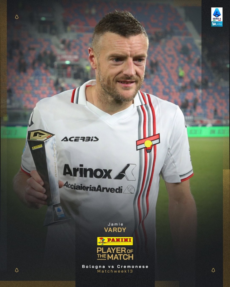 此役38岁瓦尔迪梅开二度,帮助克雷莫内塞取胜,意甲官方宣布,他当选本场比赛全场最佳球员。