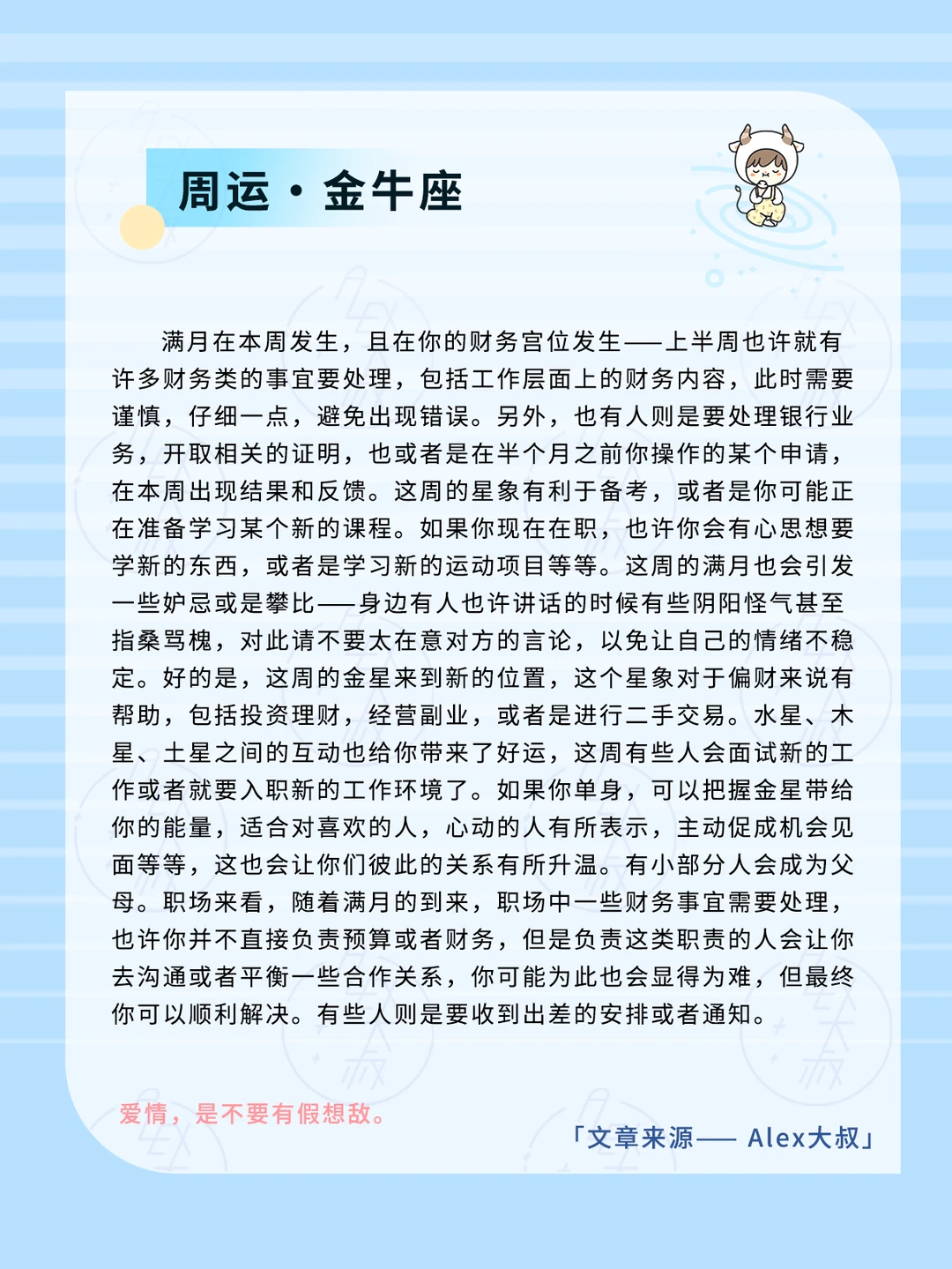 要思考,到底要断联还是继续保持联络这件事,也许你此时存在一些沟通或者人际相处上的问题,现在满月的到来,你需要从中做出决定,或者是取舍,如果你想要得到什么,那么势必你无法兼顾到另一个东西,这周你就会有答案。