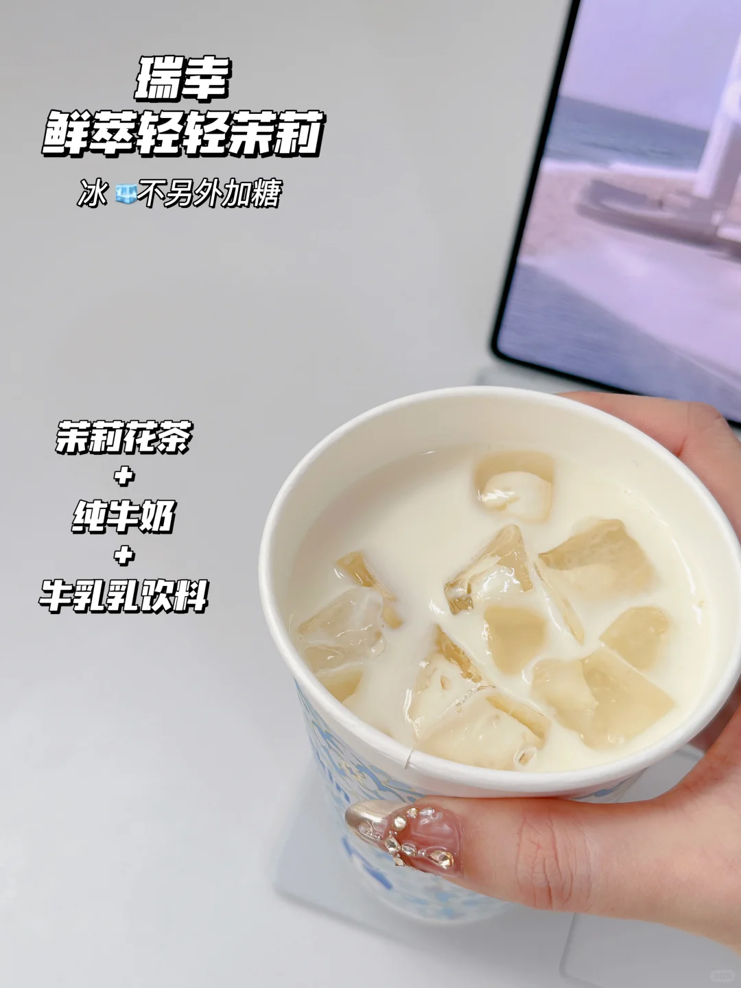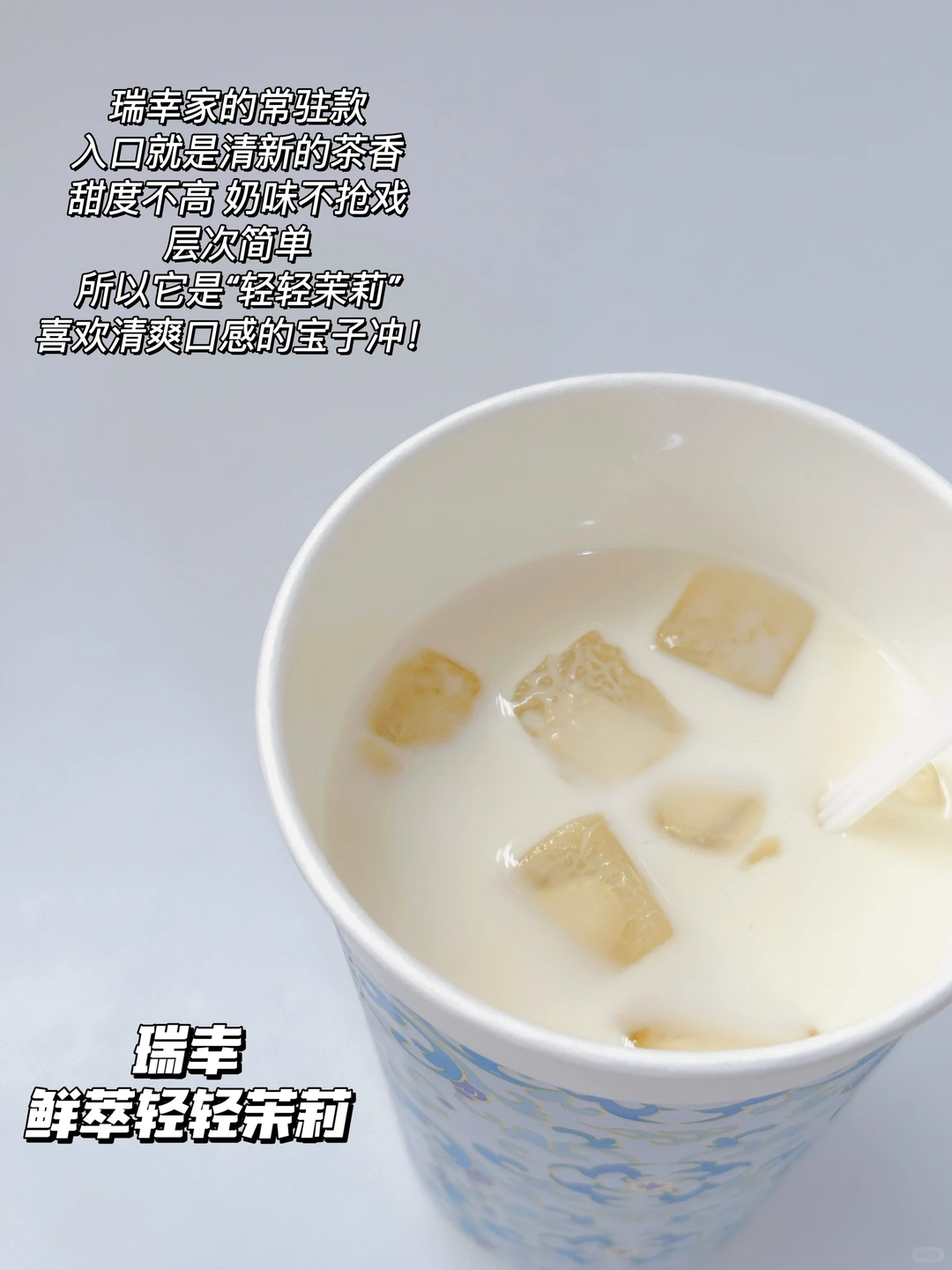 ▪️ 喜欢清爽茶感+纯粹花香→瑞幸鲜萃轻轻茉莉(常驻款闭眼冲)