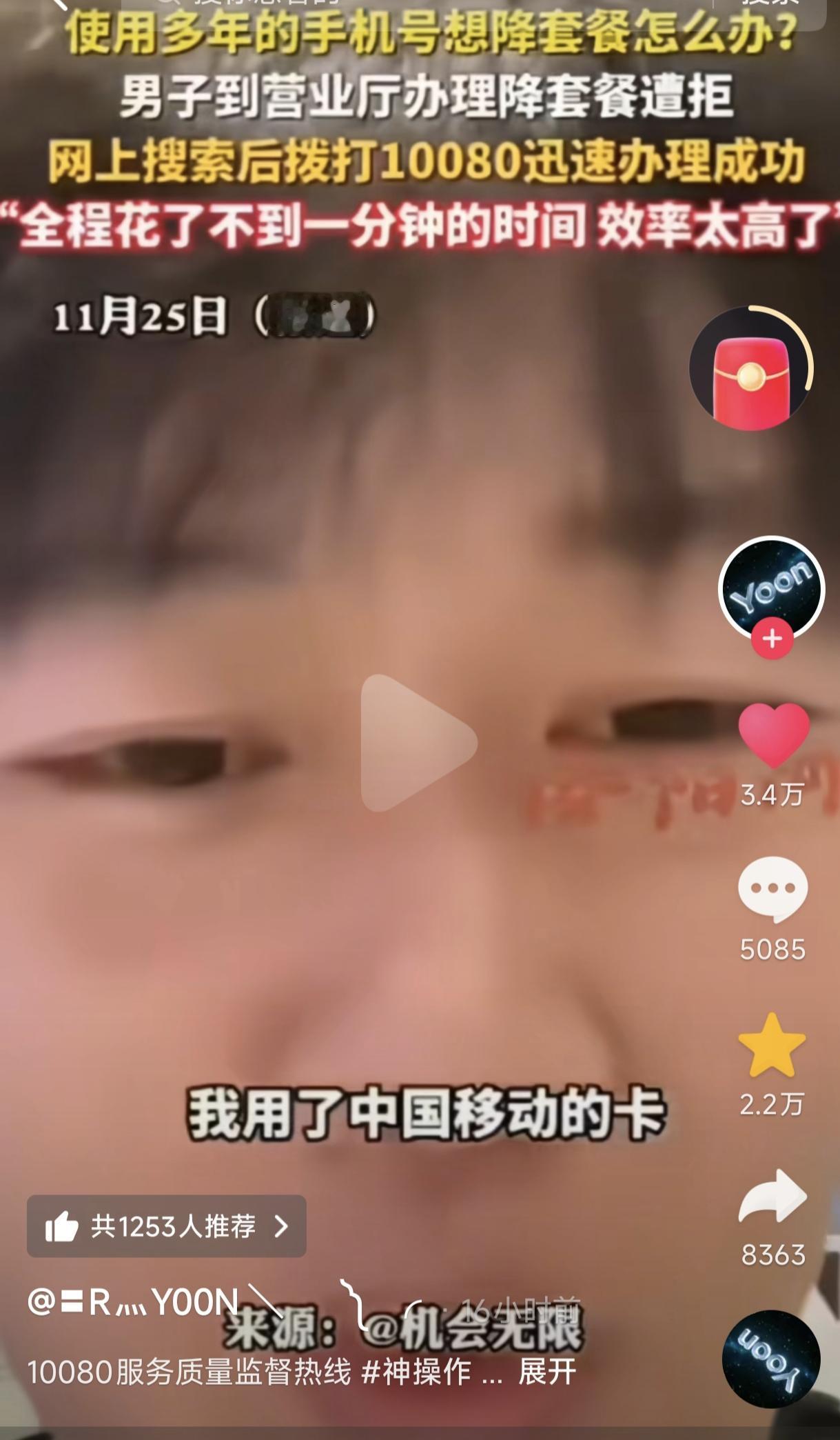 “能省则省!”男子想将69元手机套餐降为8元套餐,去营业厅办理却被拒,对方让他打10086降,男子拨过去却一直占线,后来他上网搜索说要打10080,果然一分钟不到男子就完成了降套餐,令他惊喜不已! 男子的经历跟我十分相似,我也是用69元套餐移动手机卡多年,后来因为一直处于网络环境中,话费与流量实在用不完,就打10086降到8元套餐,感觉省下了不少钱。 这位男子最初是去营业厅办理的,但对方不给降,说没有权限,升套餐倒是可以。的确,有的小营业厅没有降套餐权限,用低套餐也需要大点营业厅甚至还要经理审核。 之后对方让男子打10086降套餐,但男子拨过去却一直打不通,只得另寻他法,后来他在网上搜索说要拨打10080(我以前降套餐直接打10086降的,估计现更改了)。 果然,男子拨打了10080后,全程不到一分钟就完成了,如此高效率令男子惊喜不已,便将这一降套餐的经历分享到了网上,以让网友们少走弯路。 对此网友们热议不止...... 有网友说,我也想换8元的保号套餐,就怕出门流量不够用。 其实对于一般宅在单位或家里即很少出门的人,用8元套餐足够,如果担心某一次出门会超流量,可以事先购买一点流量。 也有网友说,我用8元保号套餐好几年了,移动总给我打电话让我换套餐,我说我就是留个号码,你再打我就携号转网了。 这跟我的经历相似,我要是超一点点话费与流量,移动就会打电话来劝我升套餐,其实完全够用了,多了就是浪费。 我认为用手机套餐,真得根据自己具体需求来,实在用不了通话分钟数及流量,还不如降套餐的好,现在挣钱不容易,能省一块是一块。