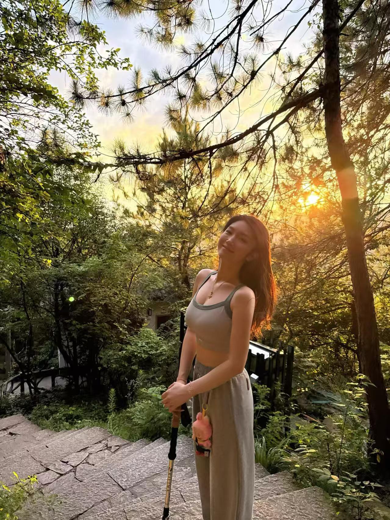 “出门前看天气预报说‘微风’,合着这风全攒山顶等着我呢——爬最后五十米的时候,我扶着树喘气,心里把‘谁发明爬山谁是狗’骂了三遍,腿肚子抖得能敲鼓。结果一抬头,那太阳跟融化的橘子糖似的,把云都染得暖乎乎的,山底下的村子缩成星星点点的小方块,风裹着树叶味儿往脖子里钻,汗湿的T恤都凉得舒服。 我举着可乐站那儿,刚想拍张照,手机差点让风吹飞。扭头跟旁边的大爷唠:‘这趟累得值啊!’大爷乐了:‘小姑娘,这叫“先苦后甜”。’我边点头边偷摸揉腿——确实甜,但下次爬山前,我高低得穿双软底鞋。”