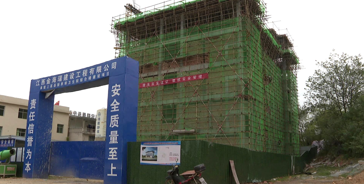 为改善基层卫生条件,解决群众看病难题,上高县新界埠镇于今年8月启动镇卫生院综合楼建设项目基础工程,现已完成主体封顶,预计年底建成。