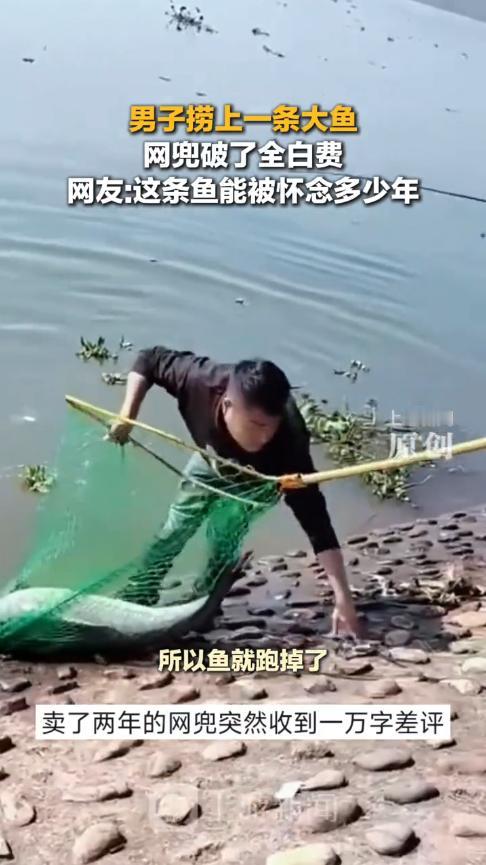 “笑不活了!”11月28日,浙江温州,一男子在河边钓鱼时,费了九牛二虎之力,终于钓上来一条1米多长的大鱼,结果朋友帮忙抄鱼时,网兜却突然破了,到手的大鱼掉进了河里,瞬间就游没影了!网友:这种事能记一辈子。 钓鱼是一项非常考验人耐力的事情,有时候在河边坐上一整天,鱼都不咬钩,可是刚起身准备离开,就有大鱼上钩了,而且和大鱼对峙也需要极好的体力,不然力竭的就成自己了。 事发当天,男子和几名朋友相约在河边钓鱼,几人收拾好装备后,便纷纷开始垂钓,不一会儿,就陆续有人开始中鱼。 就在众人情绪高涨时,一名朋友传来了尖叫声! 众人循声望去,发现他的鱼竿已经弯曲到变形,整个人正被迫朝河里走去,大家意识到这是钓到了大鱼,于是纷纷放下手中的家伙过来帮忙。 经过一段时间的鏖战,大鱼终于没有了力气,缓缓的浮出水面,男子看到大鱼的那一刻,别提有多高兴了,目测得有70斤! 随后朋友过来帮他抄鱼,两人抬着大鱼往岸上走,可谁也没想到,网兜没能承受住大鱼的重量,直接烂掉了,大鱼就这样又掉进了水里,一溜烟就消失不见了。 网友看后表示,估计多年的交情要到此结束了,以后逢年过节在一起吃饭,这事都得拿出来说一顿。 信息来源:《11月28日(受访),浙江,男子捞上一条大鱼网兜破了全白费,网友:这条鱼能被怀念多少年》上游新闻