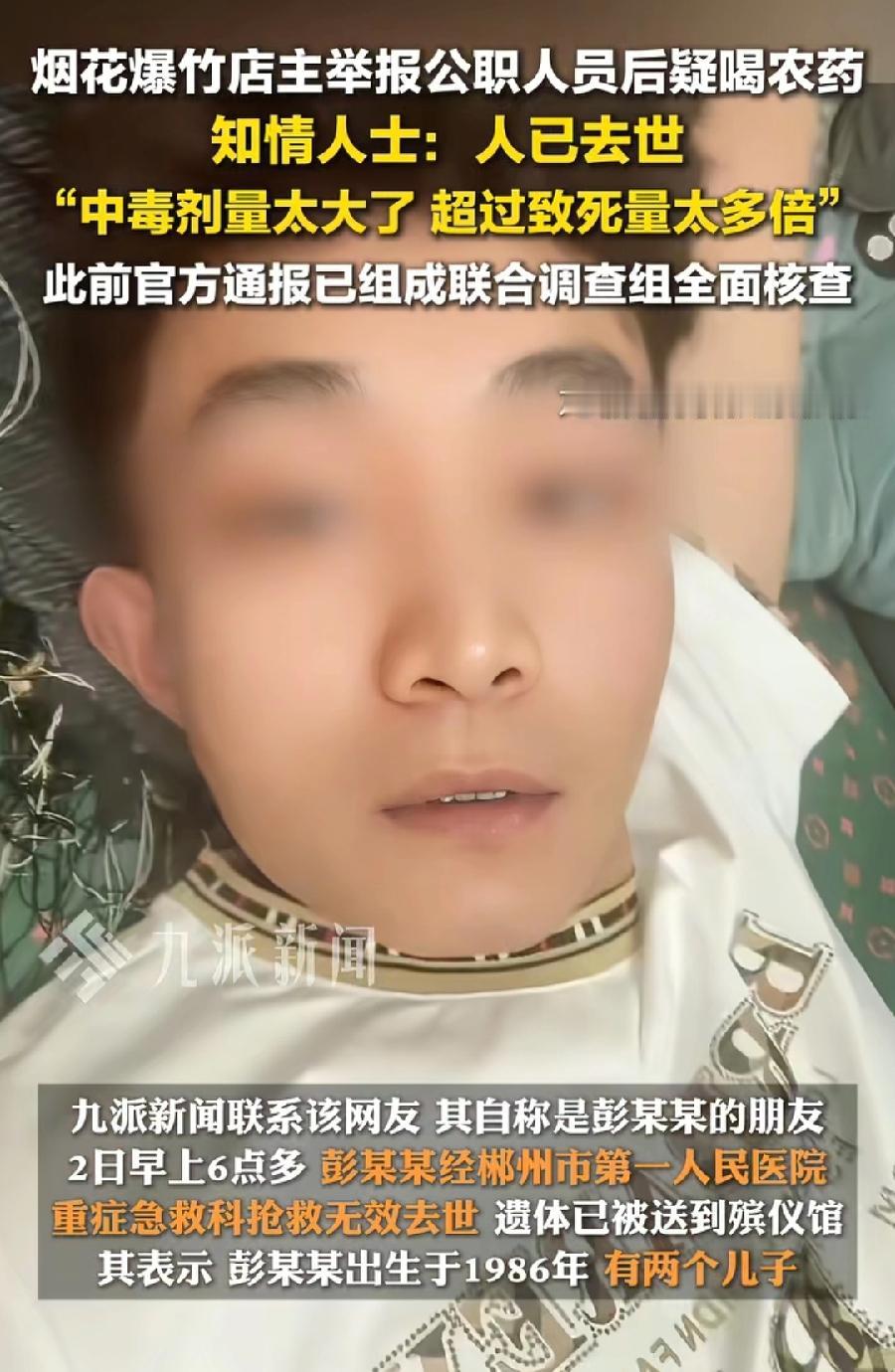 郴州喝农药烟花店老板,彭海勇去世了,没救过来!据报道,两个儿子,怎么舍得走!86年才39岁,可是长相非常年轻,像20多岁小伙子,网传几个视频,在自己店里干活,很上进很阳光的小伙子,突然就这么走了,无比痛惜!上有老下有小,有老婆有孩子,他们怎么办? 网传进了1000万的货,没办下来证,其实有点孤注一掷了,做生意太冒进了!挣不完的钱,稳扎稳打才是正策,一家人美满生活才是幸福!警示世人,特别所有年轻创业者!一路好走!