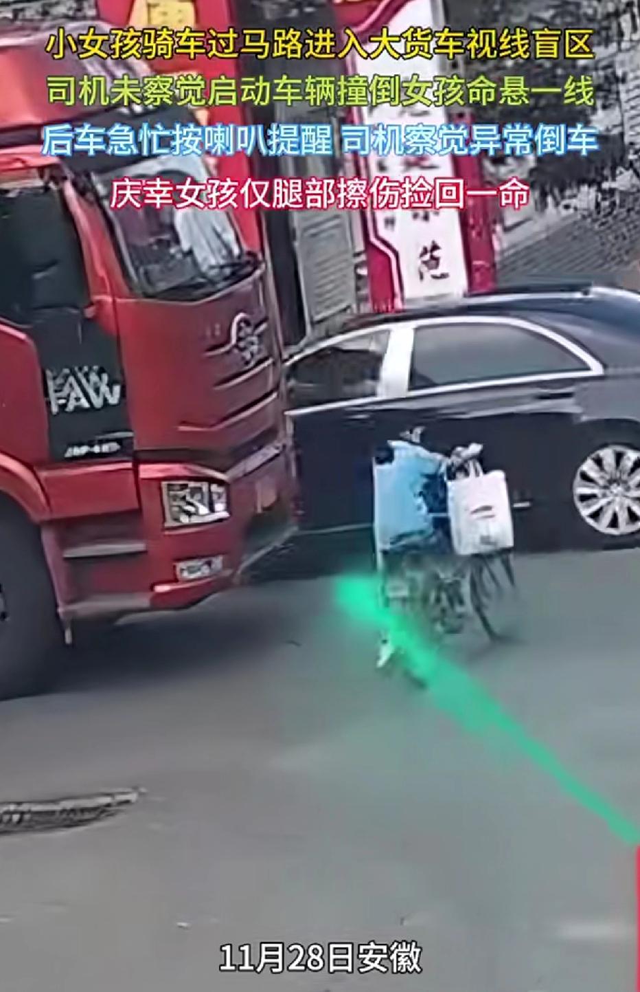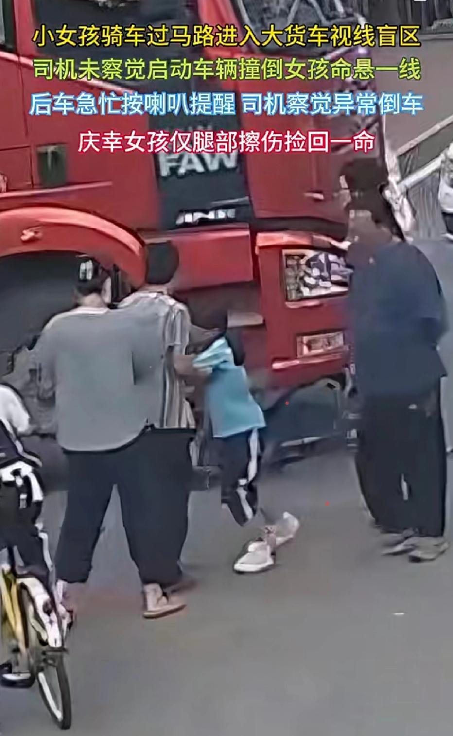 刷到这一幕手心全是汗!女童闯货车盲区被撞,后车喇叭成“救命符” 作为天天刷头
