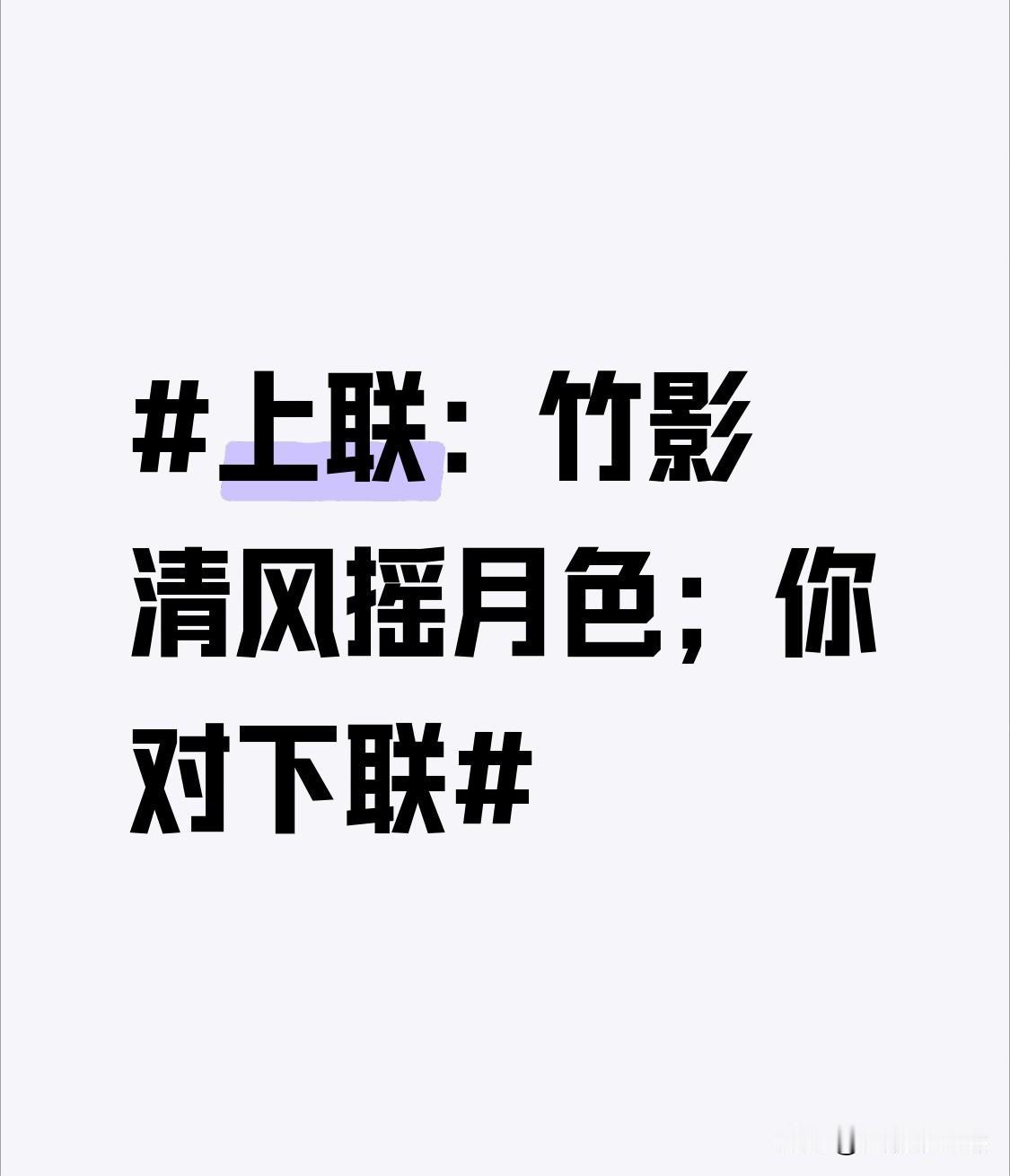 看到上联“竹影清风摇月色”,就感觉一下子被带入了一个超有意境的画面。这上联用了拟