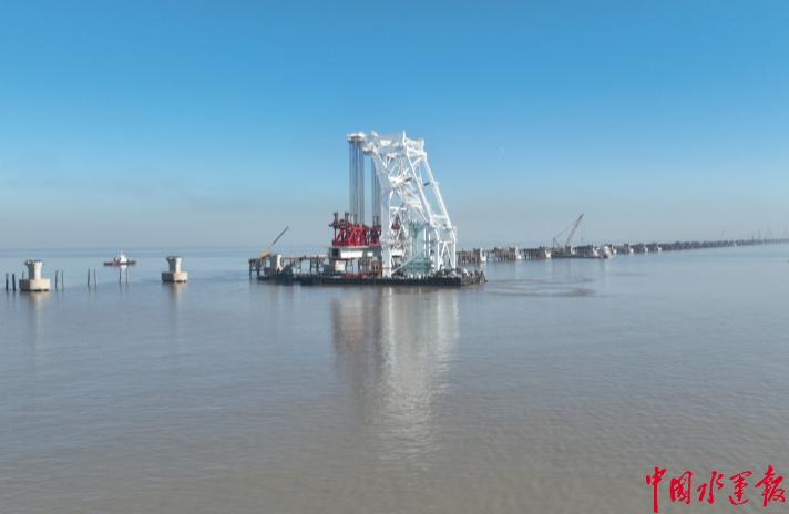 杭州湾是世界三大强潮海湾,浪大、流急、潮差大,冬季寒潮大风等恶劣气象情况也对大桥建设带来了严峻挑战。在这场与风浪赛跑的重大涉水工程施工期间,宁波海事部门与工程南岸项目部建立专线联络机制,先后召开3次专题协调会,系统评估作业风险,针对箱梁“超大、超重、超高”的特点提出具体监管建议,形成“一梁一方案”的专项安全保障措施。通过“数字孪生”预演施工场景,创新实施“潮汐窗口”通航方案,在保障每日商船通航的同时,为“天一号”开辟出安全作业区。箱梁架设期间,宁波海事部门通过精细化交通组织,与嘉兴海事部门协同实施分时段、分区域交通管制,海事值班室监控大屏、施工单位的智慧船舶管理系统实时跳动着施工水域船舶轨迹、气象水文等数据,无人机巡弋形成的立体监控网让附近海域的异常船舶动态无所遁形,确保了“天一号”运架梁船安全通行。