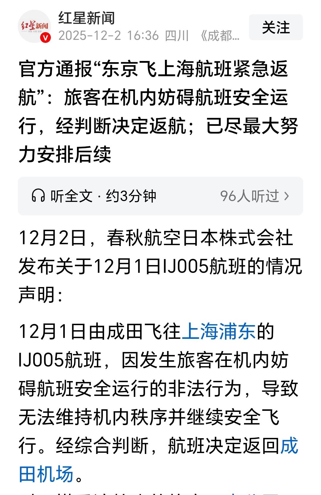 东京飞上海飞机紧急返航,原来是有人在飞机上闹事。 这种情况为什么现在我们在国内屡