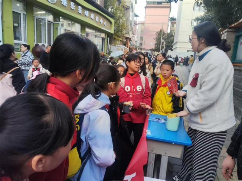 活动现场,工作人员结合未成年人认知特点,用通俗易懂的语言讲解火灾预防、火场逃生、报警求助等基础常识,重点拆解“三清三关”核心要点,明确“清走道、清阳台、清厨房,关电源、关气源、关门窗”的安全规范。互动问答环节气氛热烈,“家中哪些地方要落实三清三关?”“火灾逃生时该弯腰捂鼻吗?”等问题引发孩子们踊跃抢答,工作人员为答对题目的小朋友送上文具、玩具等礼品,让知识学习更具趣味性。同时,工作人员还向在场的同学家长发放消防安全宣传单,详细解读家庭火灾隐患排查要点、灭火器“提拔握压”使用口诀等内容。