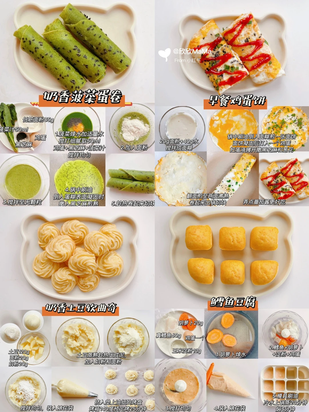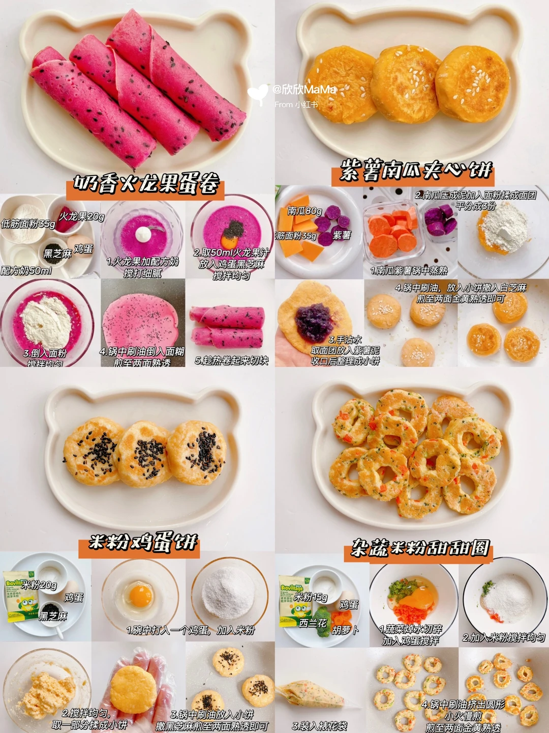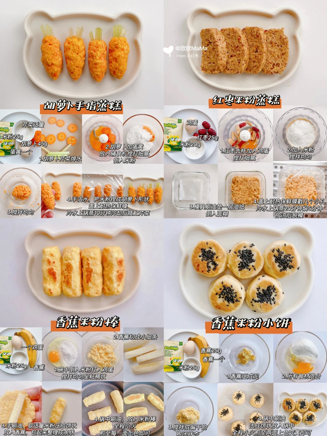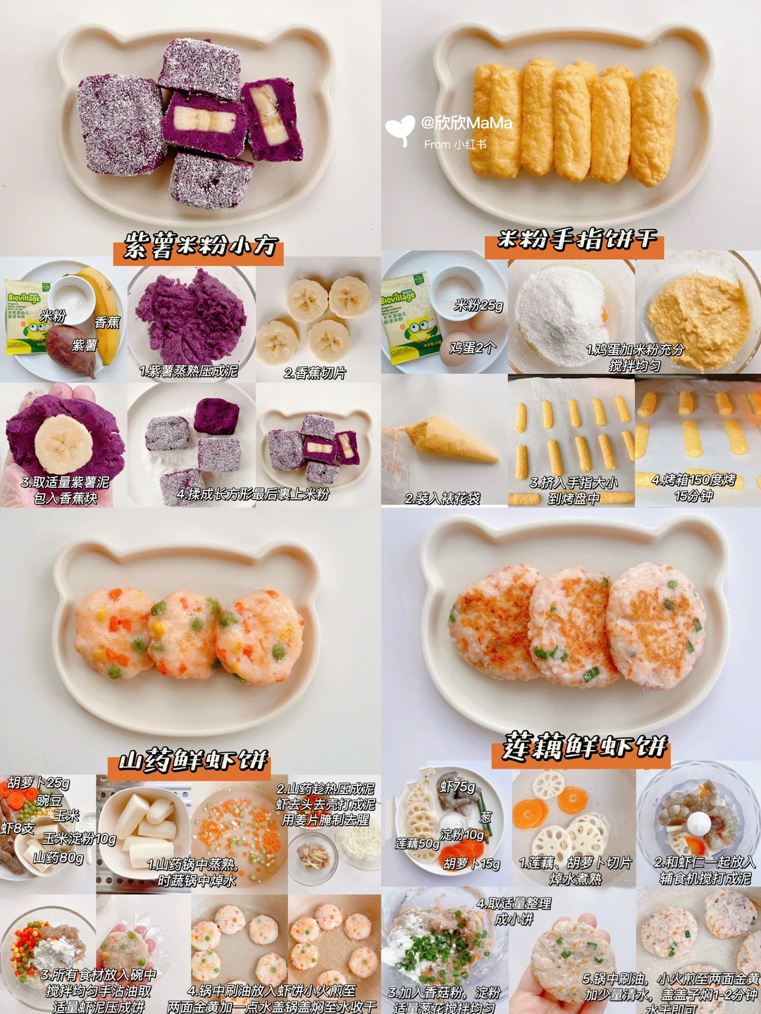 今天来分享一下平时给小欣欣做的24款简单易上手的手指食物~有米粉版,辅食小饼,有虾有肉~营养满满~每款味道都很不错,麻麻们赶紧和我一起做起来吧,总有一款合适你😋