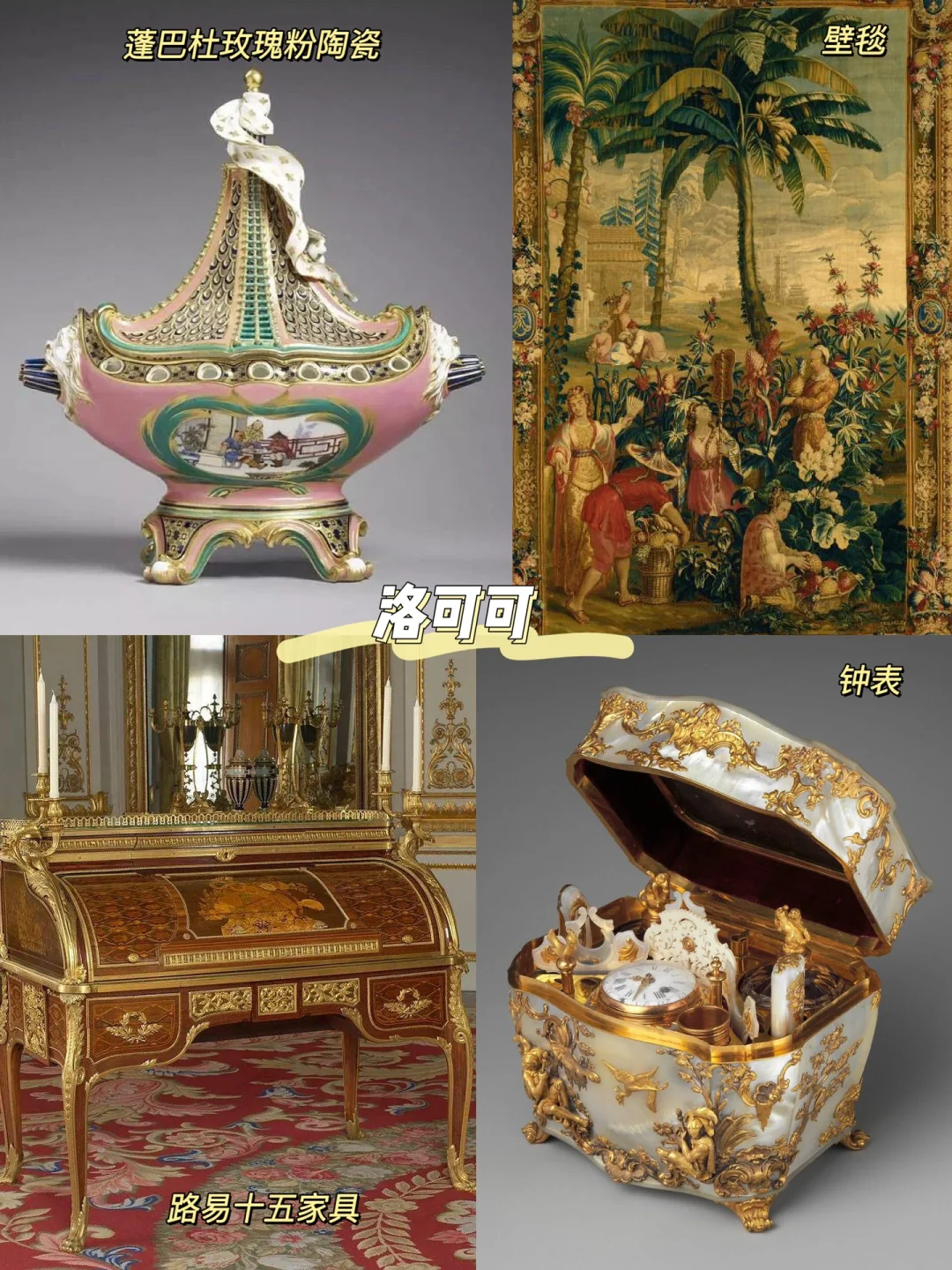 🌸18世纪洛可可风格从法国开始,塞维尔窑生产出玫瑰色蓬巴杜式瓷器,葛布兰工场制造了风靡一时的田园牧歌壁毯;路易十五风格家具,将雕刻、贴木、贴金、镶嵌、漆涂等装饰手段融会贯通。